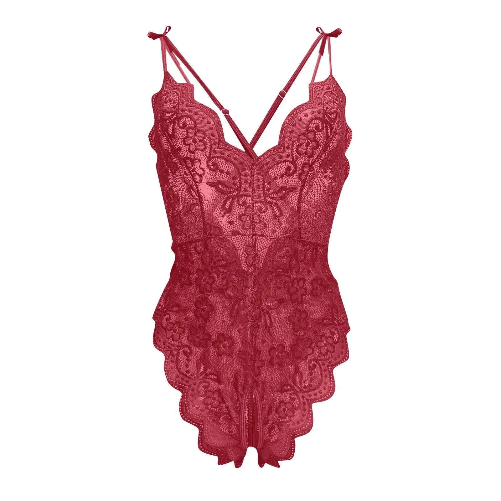 Women Lingerie Flower Lace Underwear Babydoll V Neck Sleepwear Strap
