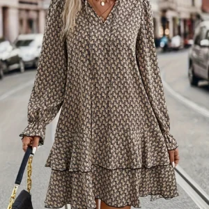 $4.96 – $7.42BlackBlueOrangePinkClear0XL1XL2XL3XL4XL5XLWomen’s Fashion Plus Size 1XL-5XL Print Flare Sleeve Ruffle Loose Dress Ladies V-neck Casual Long Sleeve Party Dress