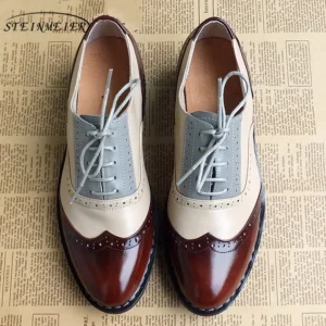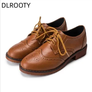 $74.41 – $82.45BlackBeigeBrownClear3536373839404142Plus Size Flats Shoes Women Genuine Leather Oxford Shoes For Women British Style Custom Shoes Lace-Up Brogue Leather Shoes