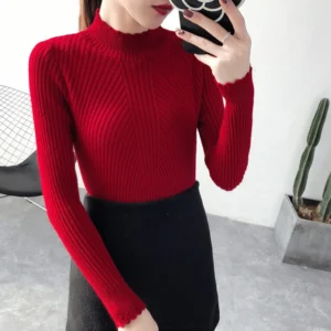 $19.05397 Apricot397 Black397 Blue397 Khaki397 Red397 White397 YellowClearLXL2XL3XLMSLong Sleeved Knitted Sweater Girl S-XL Red Coffee Green Yellow Half High Collar T Shirt Women Slim Tops Autumn Winter X-G-Xinde