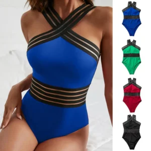 $20.81 – $23.87BlackBlueGreenWine RedClearLXLXXLMSOne-piece Swimwear Stylish Women’s Mesh Splicing One-piece Swimsuits V-neck Beachwear with Tummy Control High Waist S-shaped