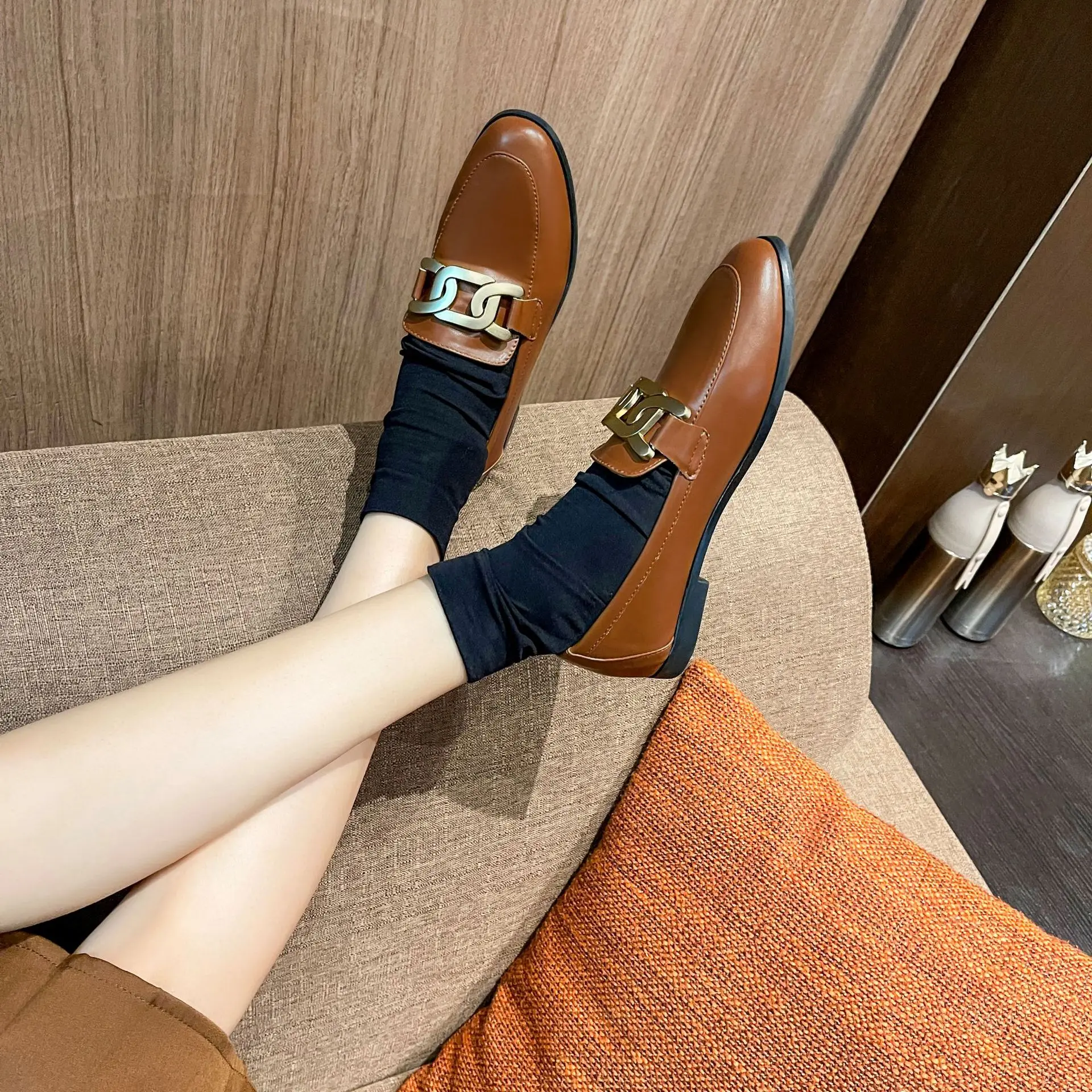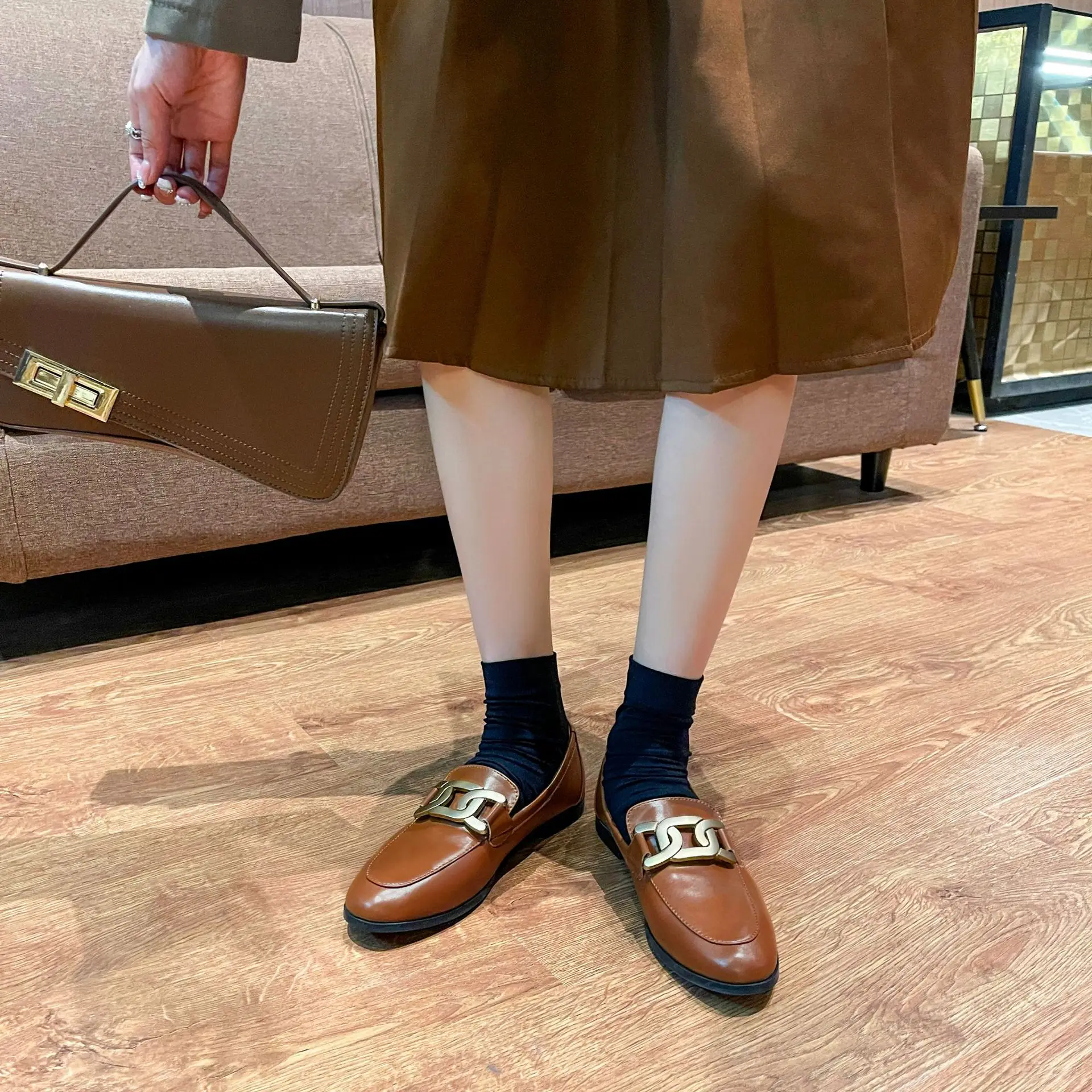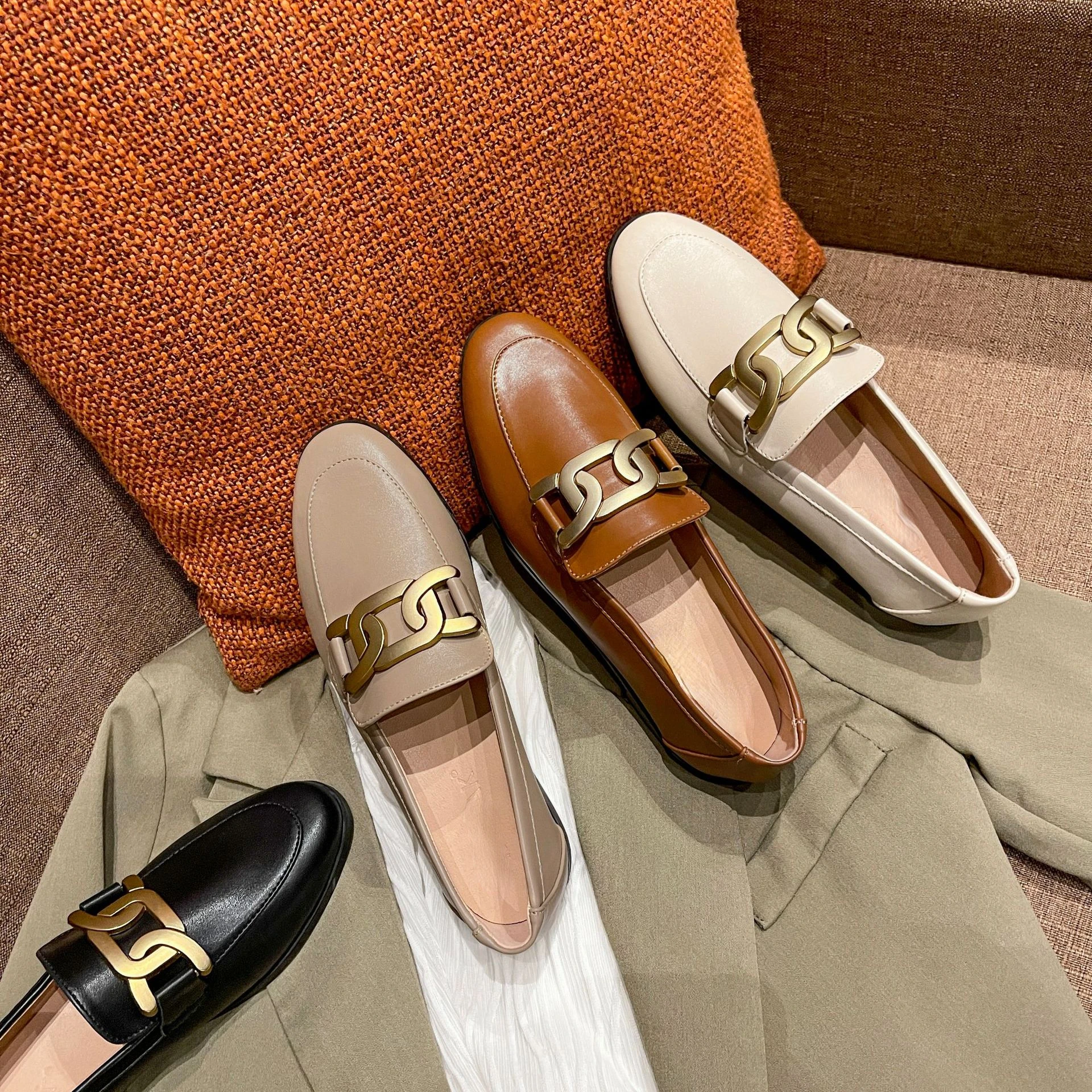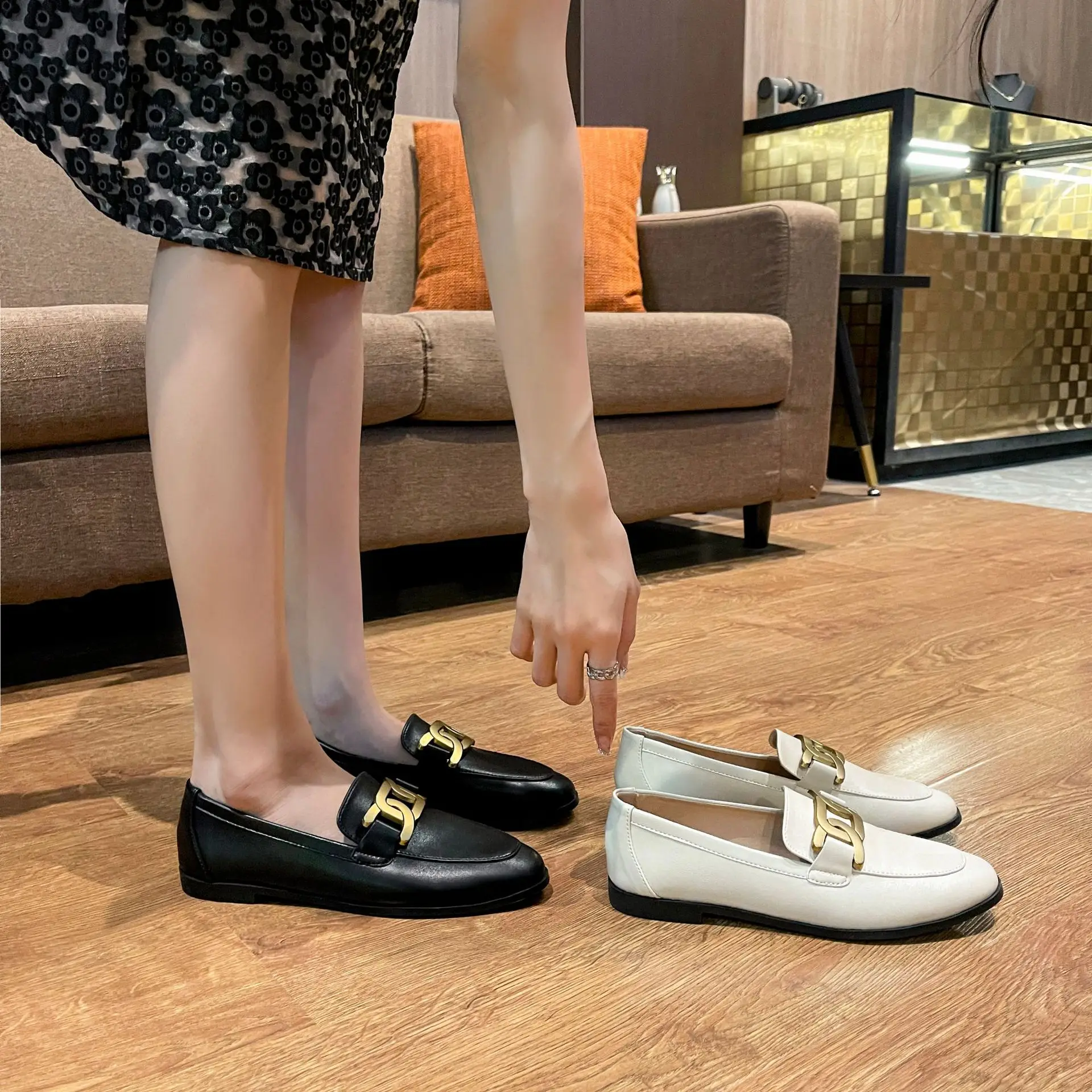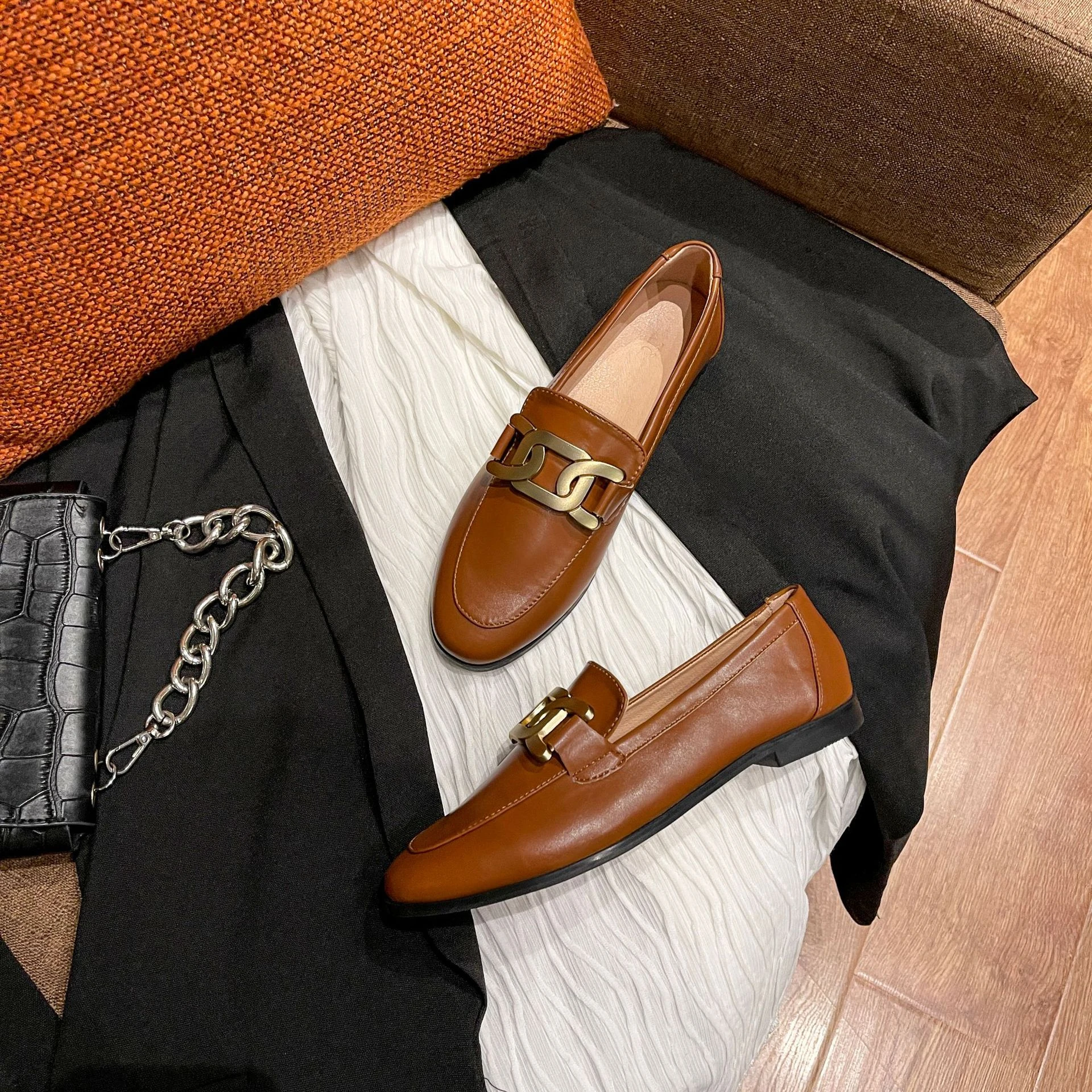 34-43 Large Size Spring Autumn Metal Decorative Black Designer Flat Women Shoes Brown Loafers Driving Shoes Pumps Khaki Mules