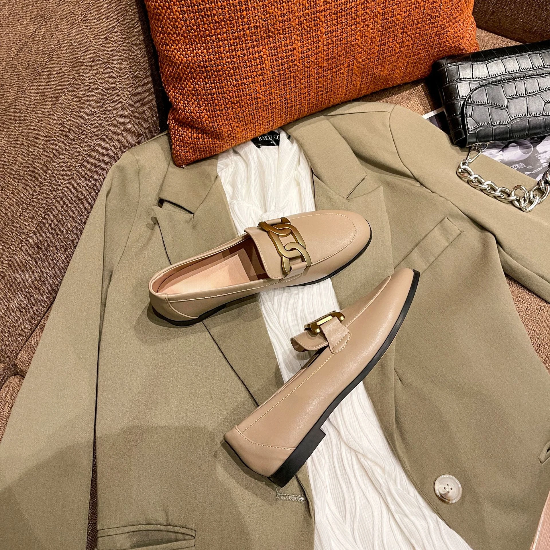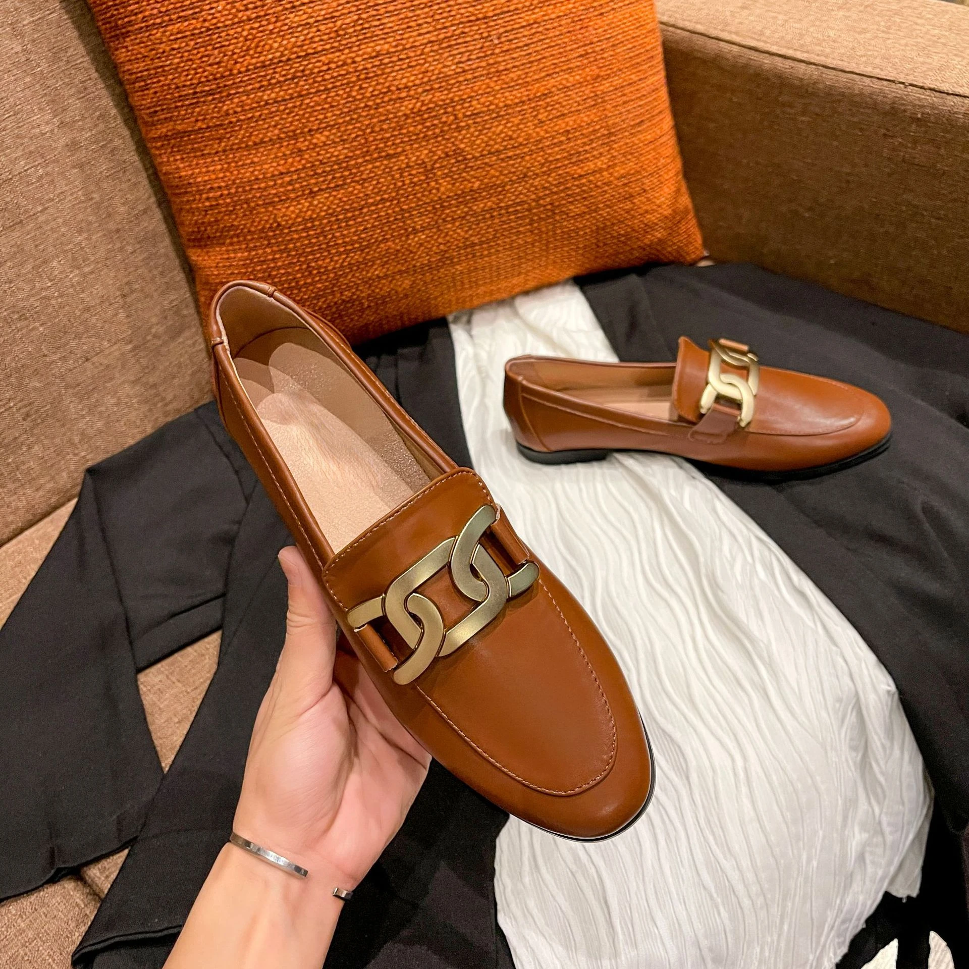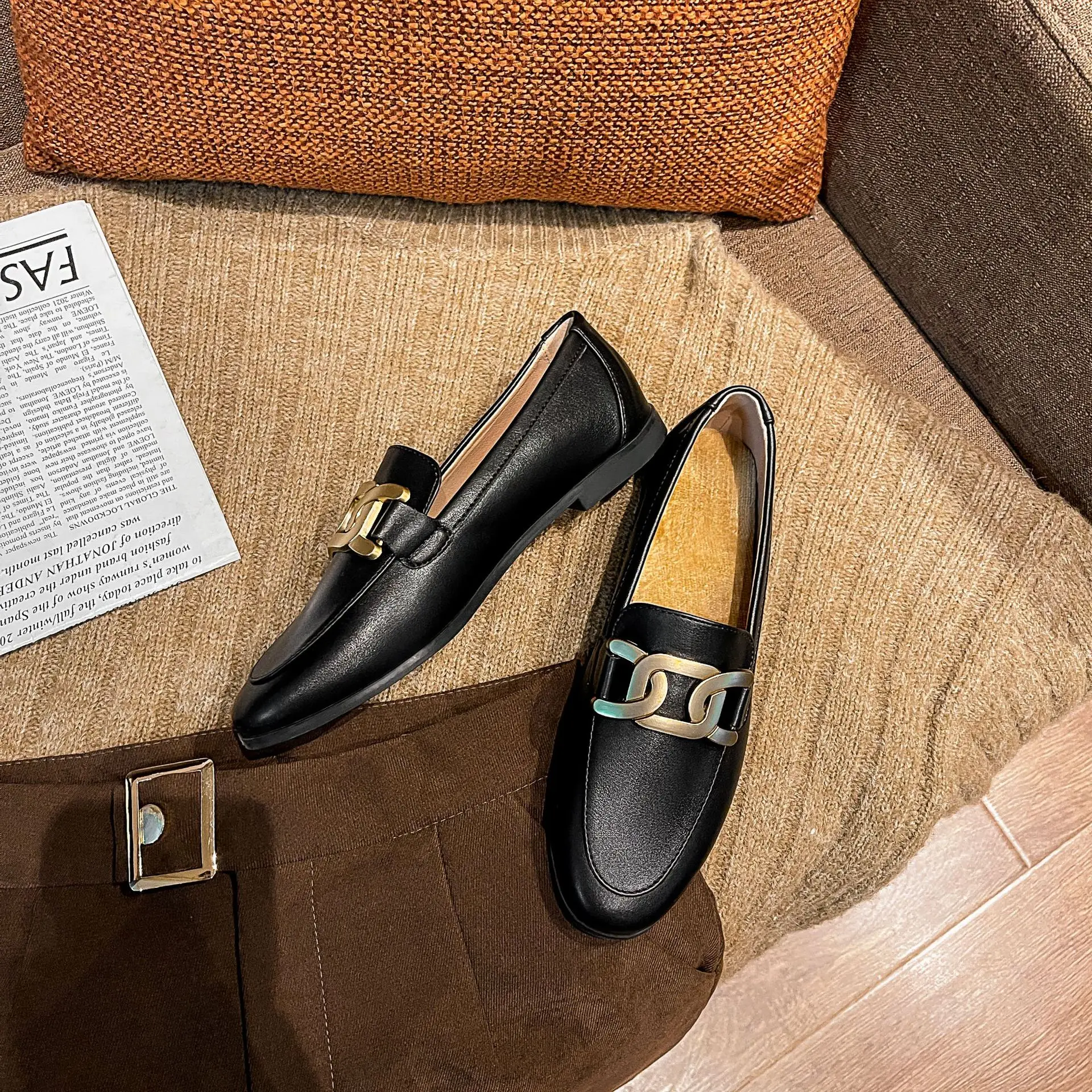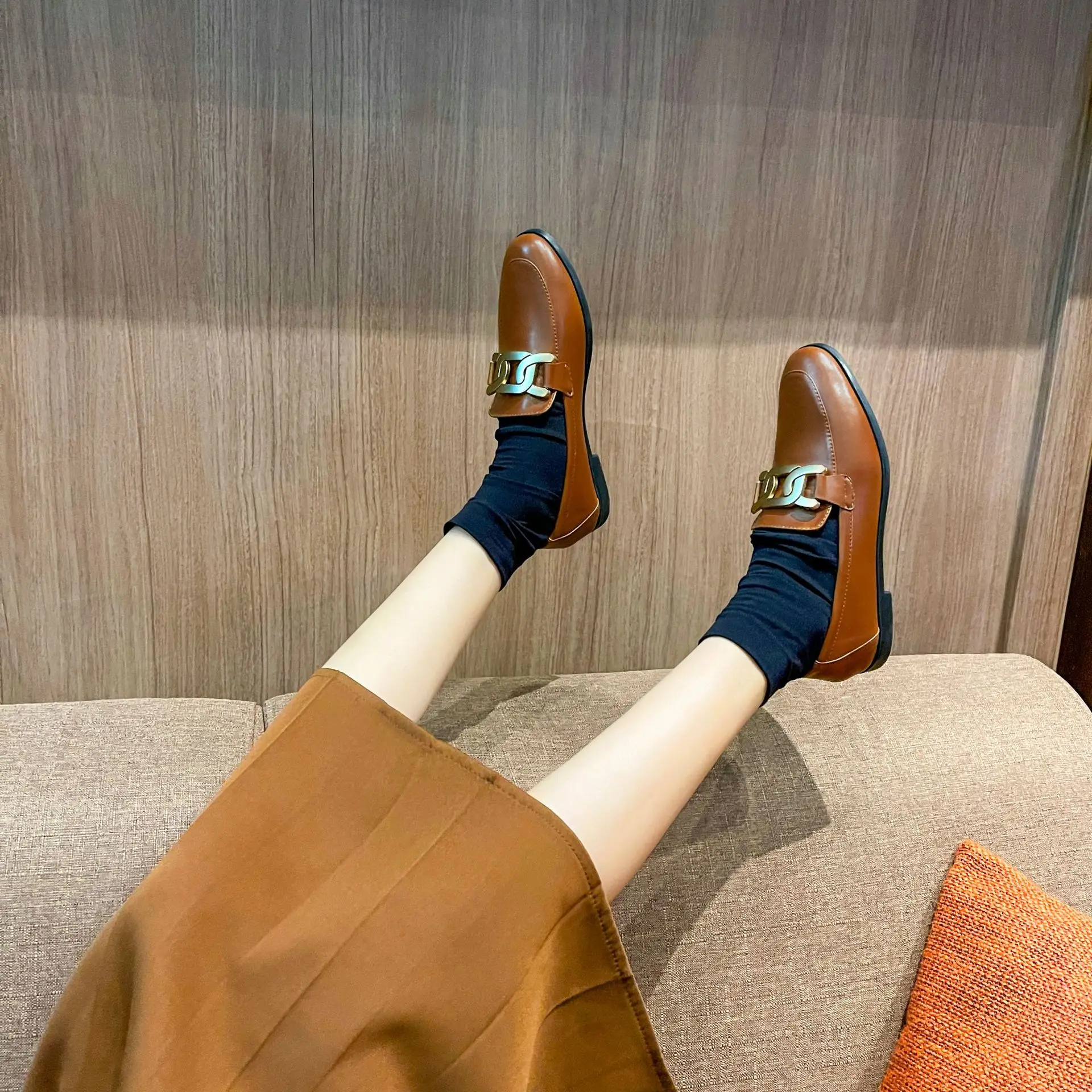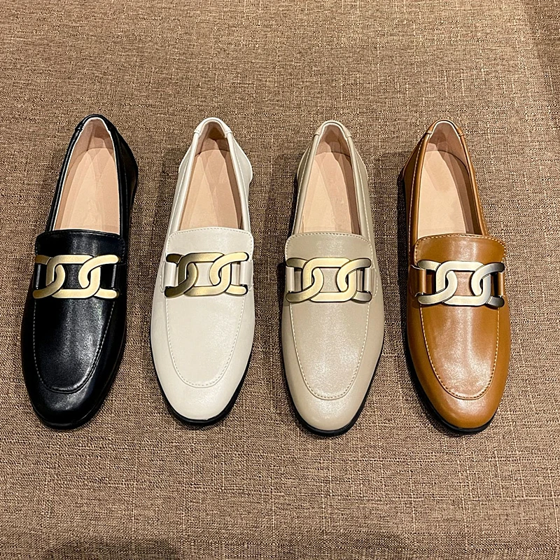 34-43 Large Size Spring Autumn Metal Decorative Black Designer Flat Women Shoes Brown Loafers Driving Shoes Pumps Khaki Mules