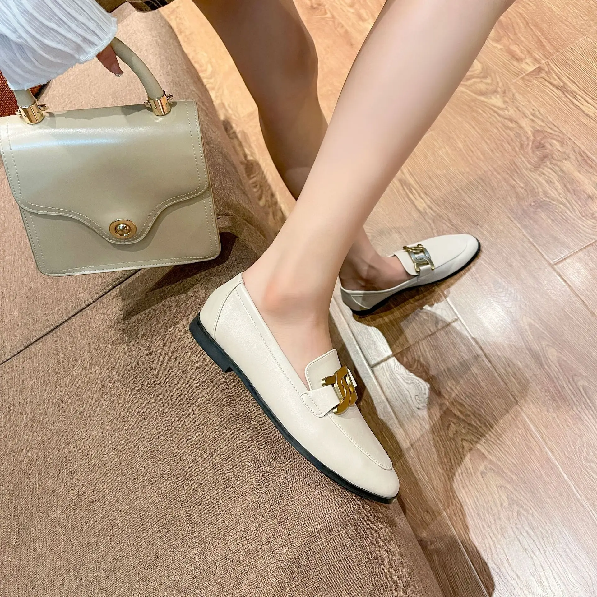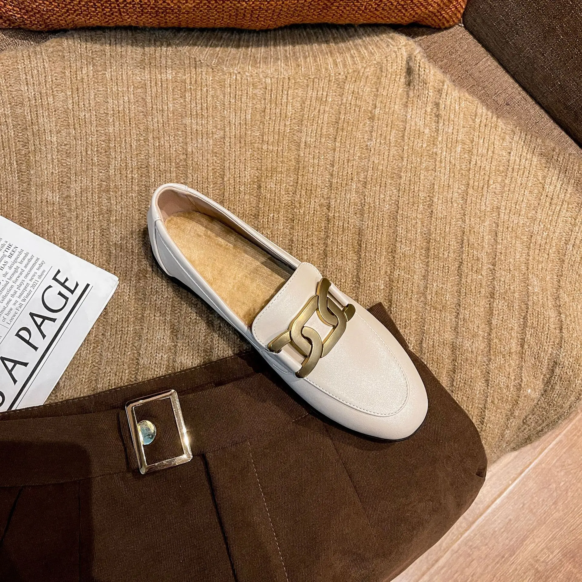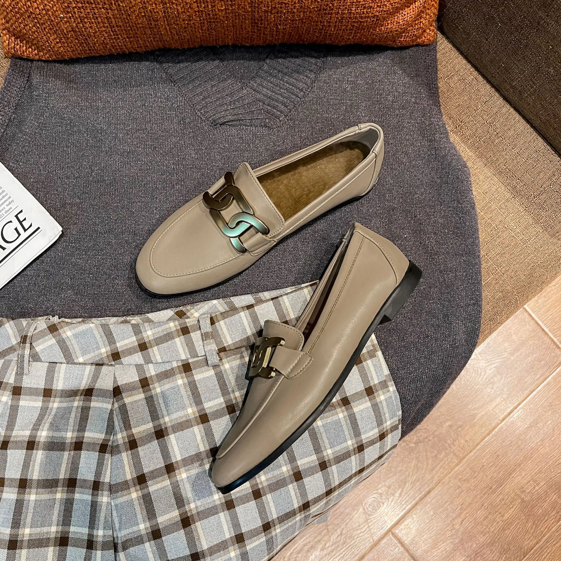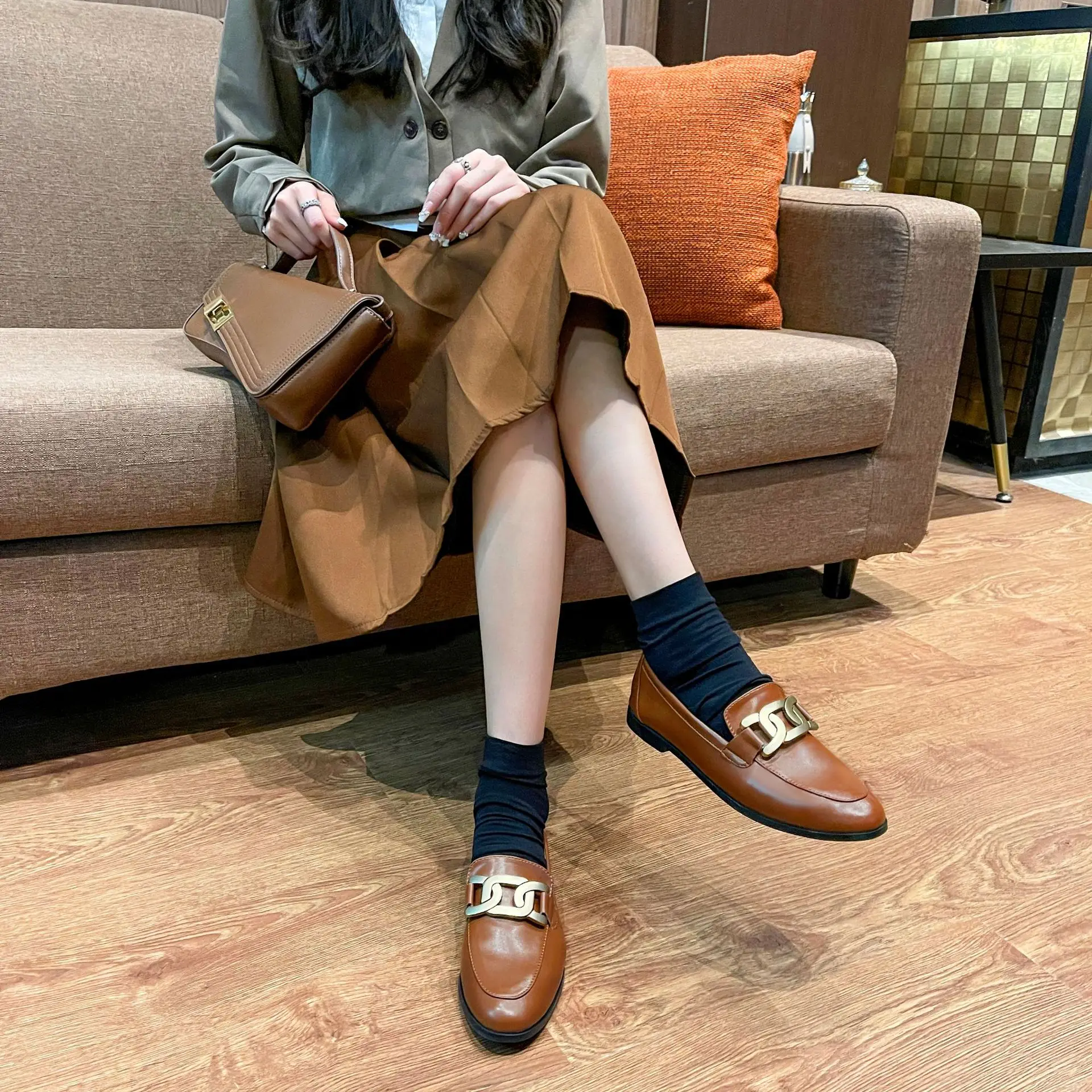 34-43 Large Size Spring Autumn Metal Decorative Black Designer Flat Women Shoes Brown Loafers Driving Shoes Pumps Khaki Mules