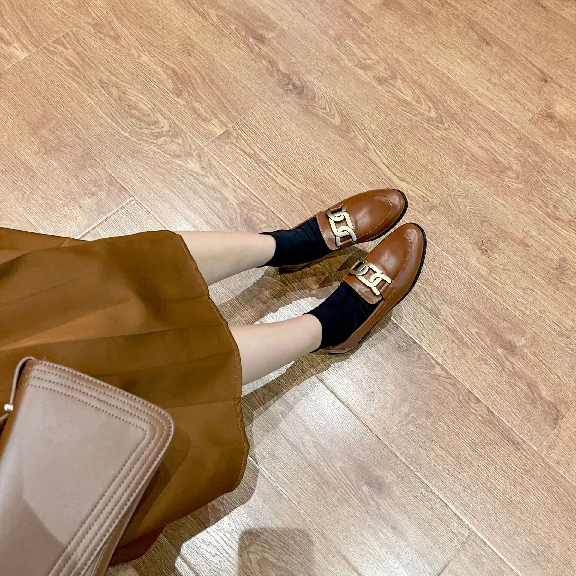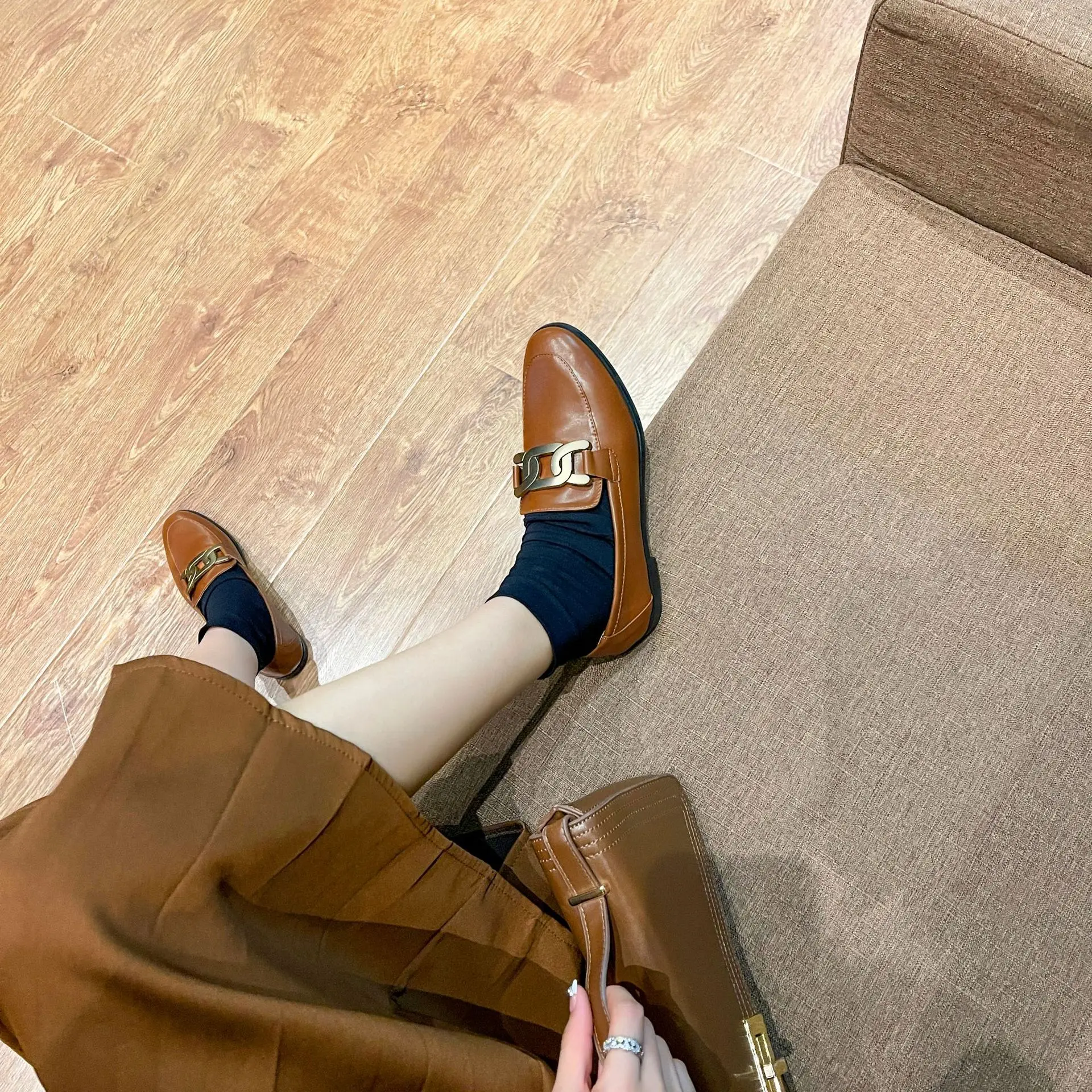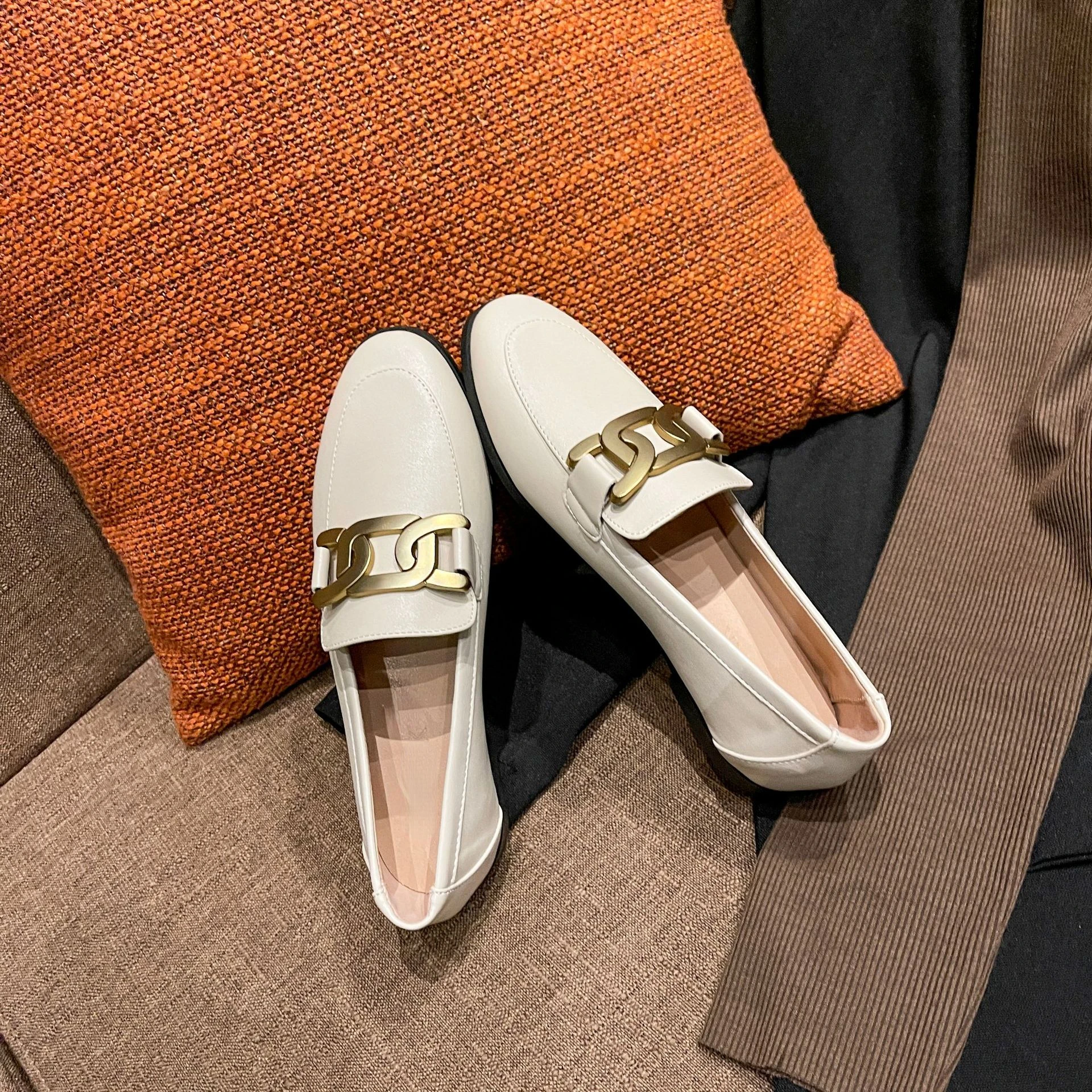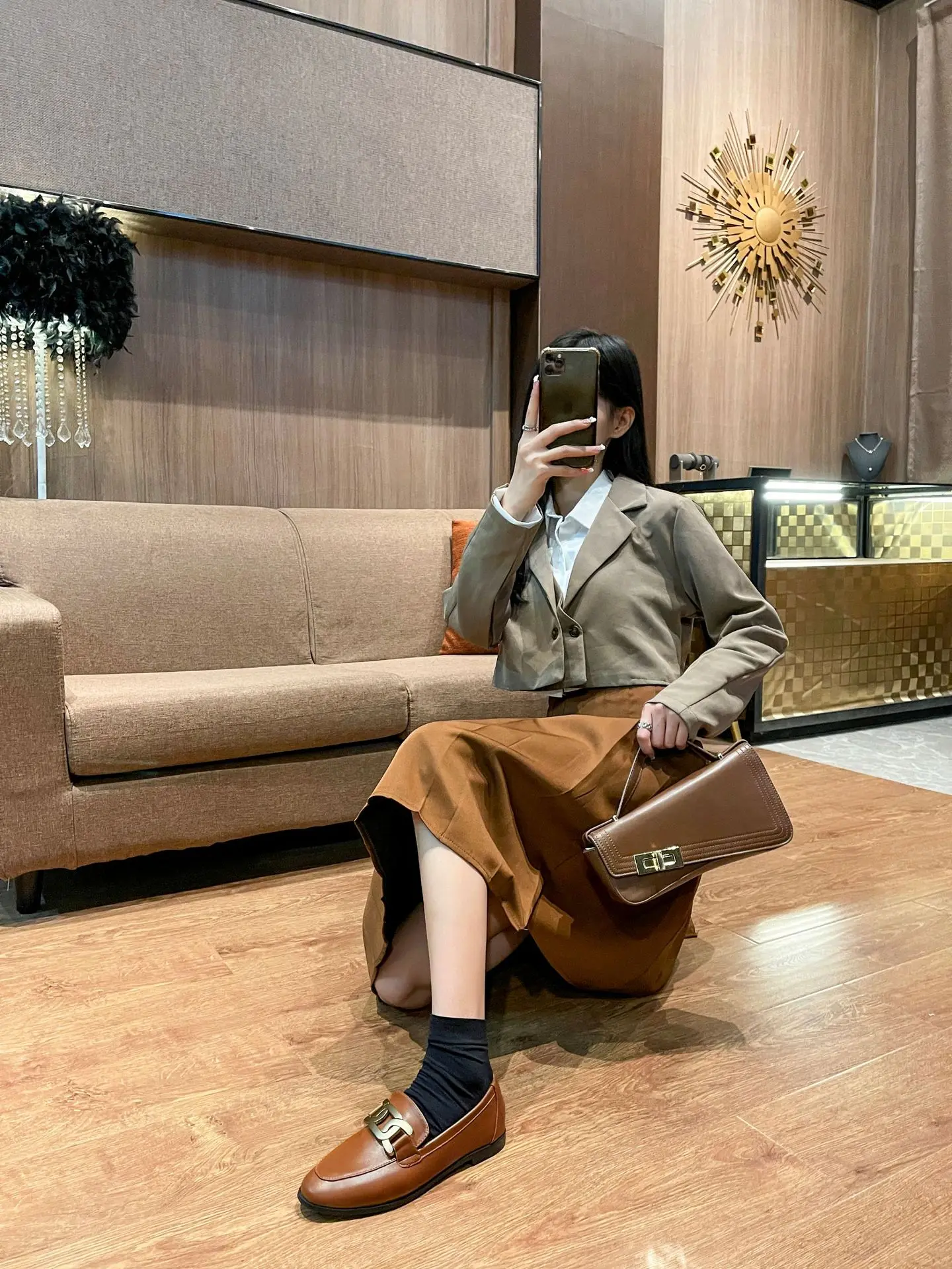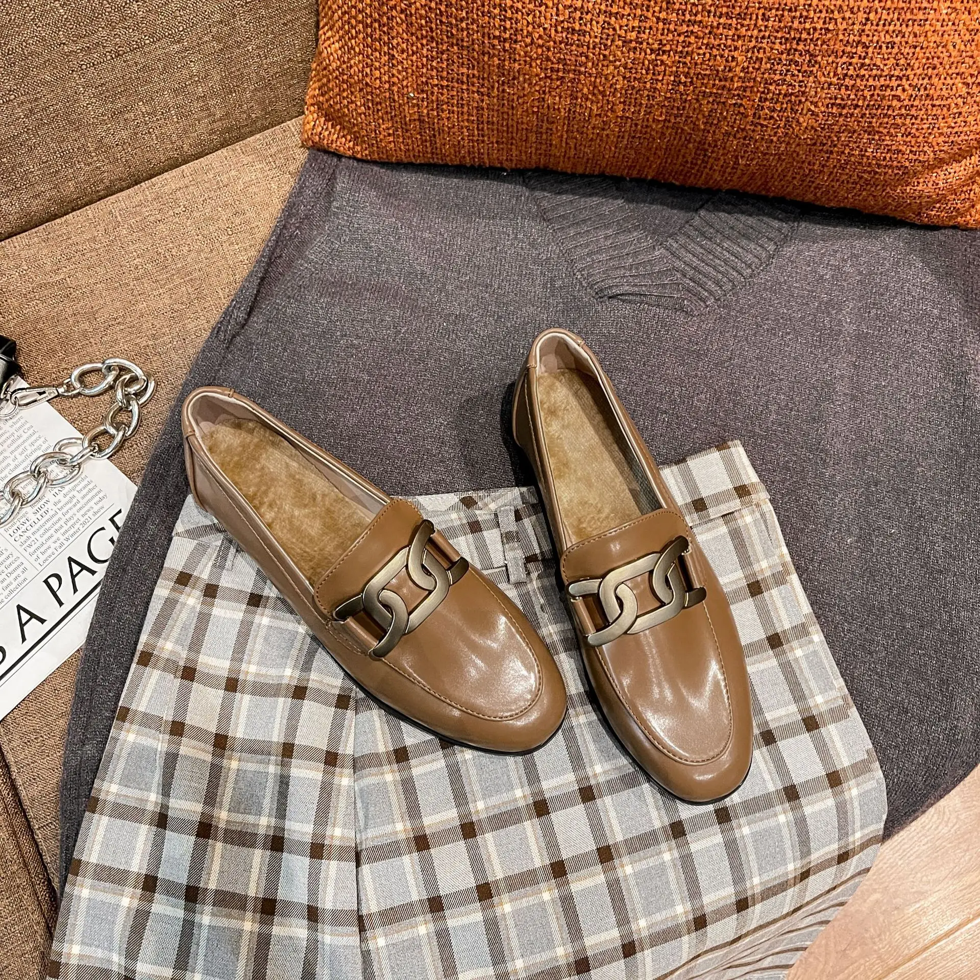 34-43 Large Size Spring Autumn Metal Decorative Black Designer Flat Women Shoes Brown Loafers Driving Shoes Pumps Khaki Mules