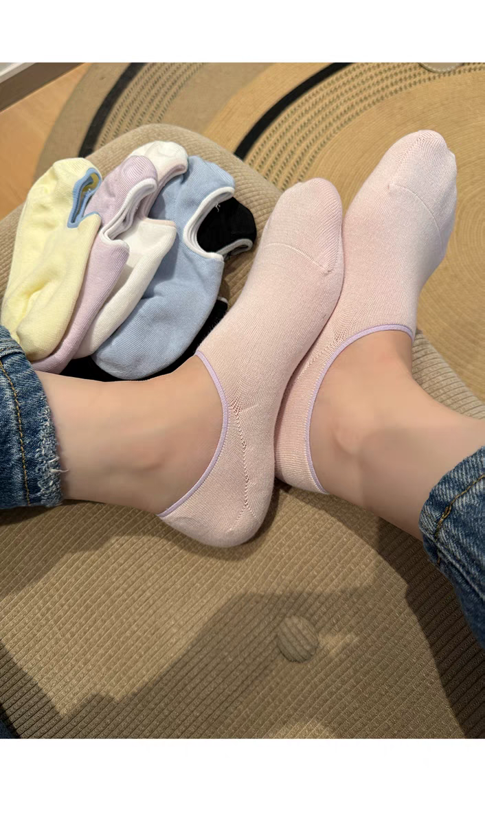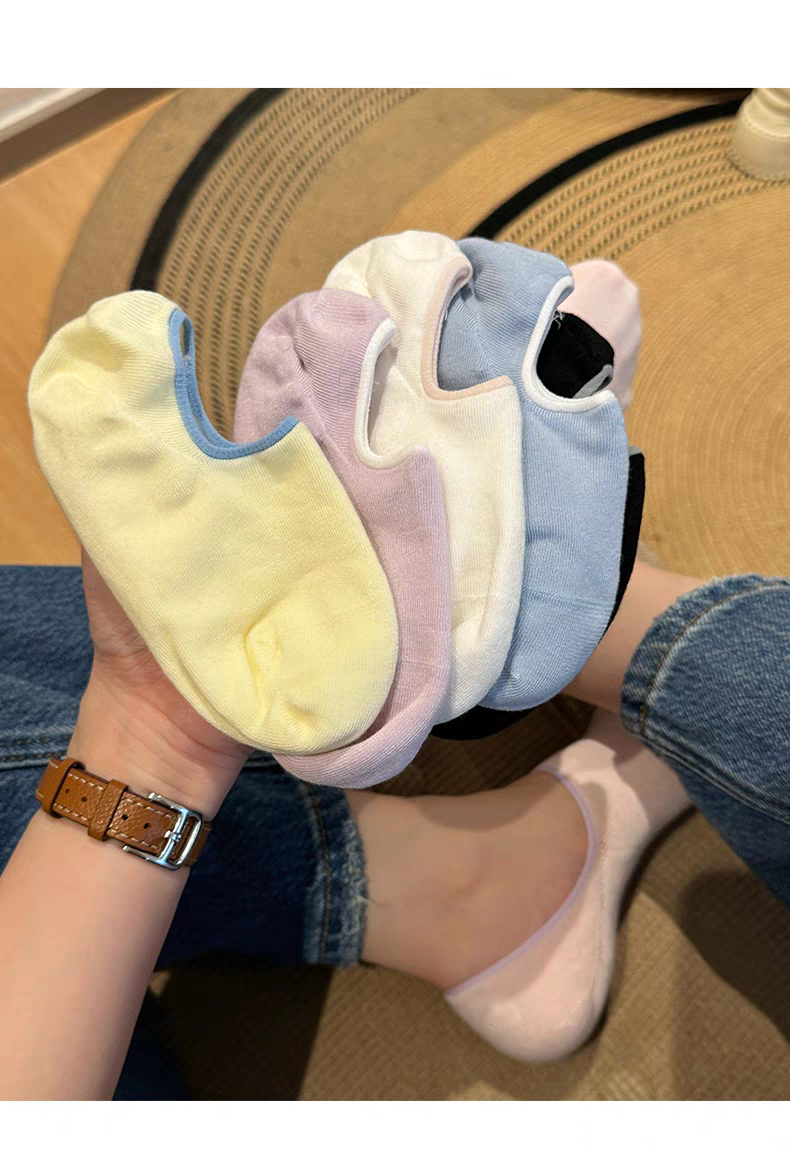 5 Pairs of Non-Falling Invisible Contrast Color Crew Socks