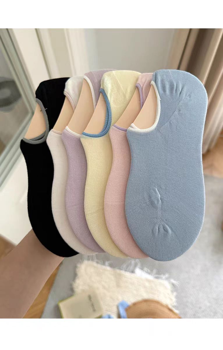 Introducing our latest collection: 5 pairs of non-falling invisible contrast color crew socks. Designed for ultimate comfort, these socks stay securely in place while adding a stylish touch to your outfit.