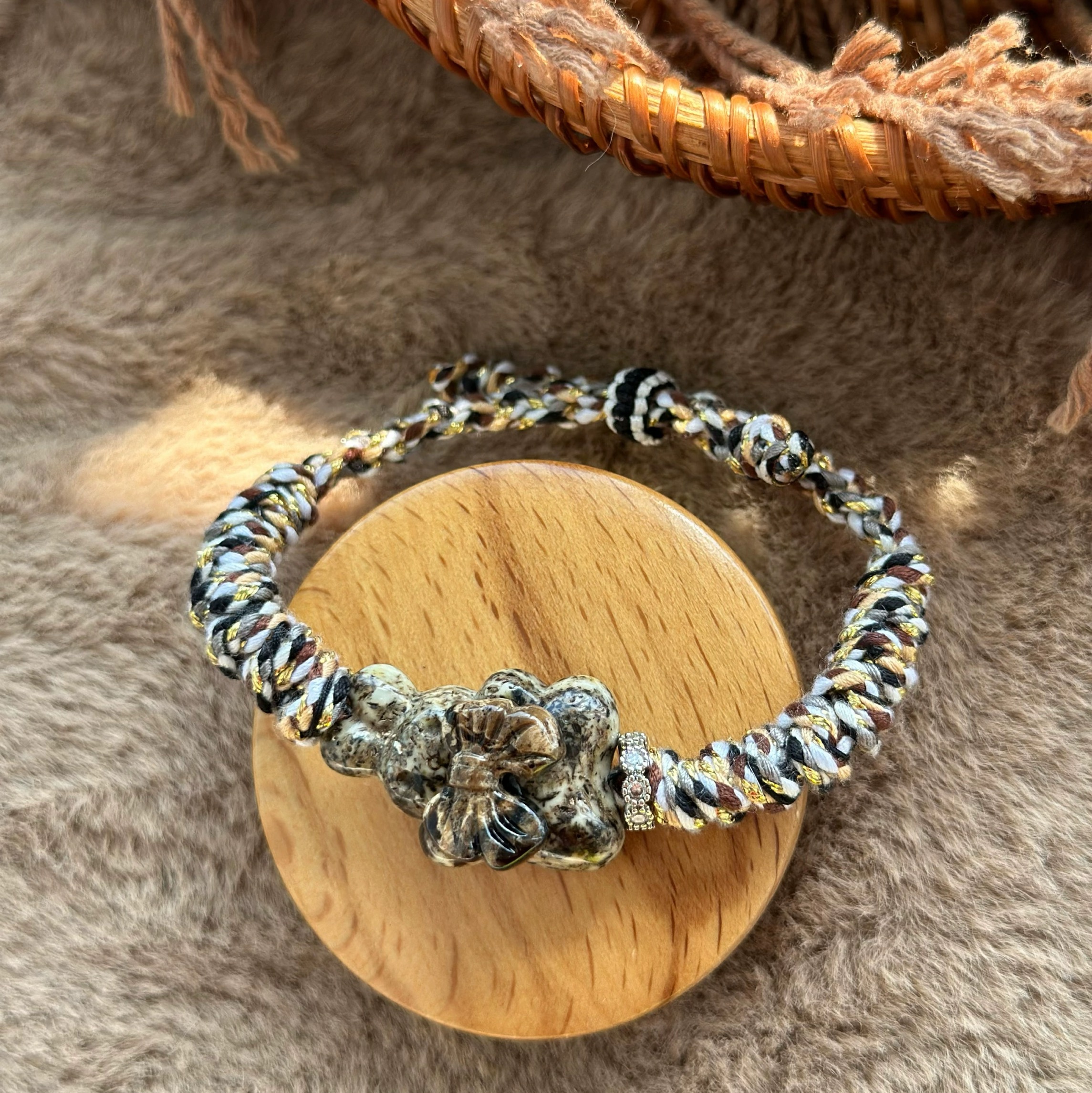 Amber beeswax Oreo bow bunny black and white flower bracelet