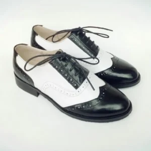 Four Seasons Hot Genuine leather Black+white sapato women oxford shoes leisure Derby Flat shoes Wing Tip Shoes