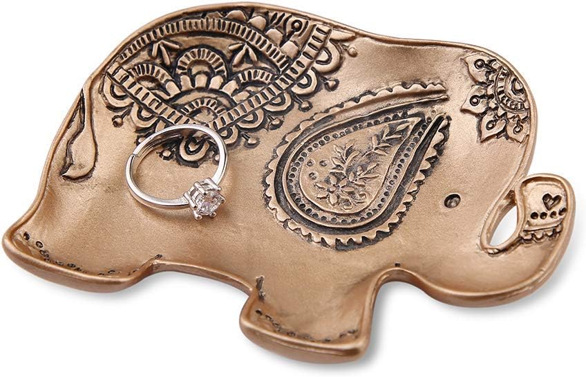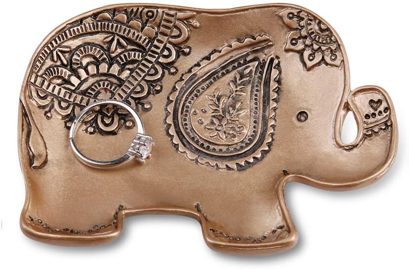 Jewelry Tray Elephant Shape Vintage Trinket Ring Earrings Organizer Storage Desk Ornaments Dish Plate Stand Display Decorative Dish Jewelry Holder 3.7 x 2.9 x 0.6inch (Bronze)
