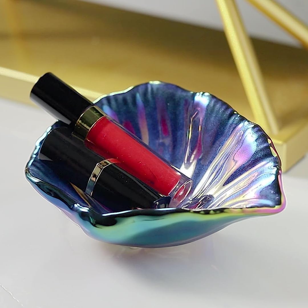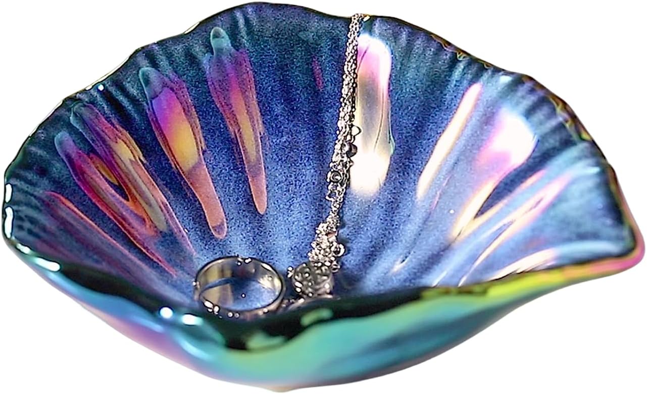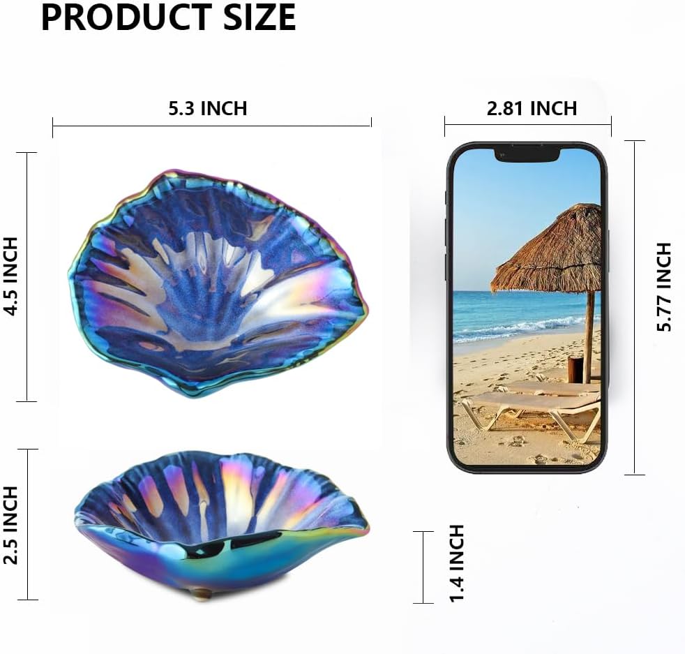 - 独特的贝壳装饰盘 – 这款珠宝托盘直径为 5.75 x 4.5 英寸,高 2.5 英寸。这款小饰品盘采用鲜艳的蓝色釉面,能够装饰您的任何家居风格,