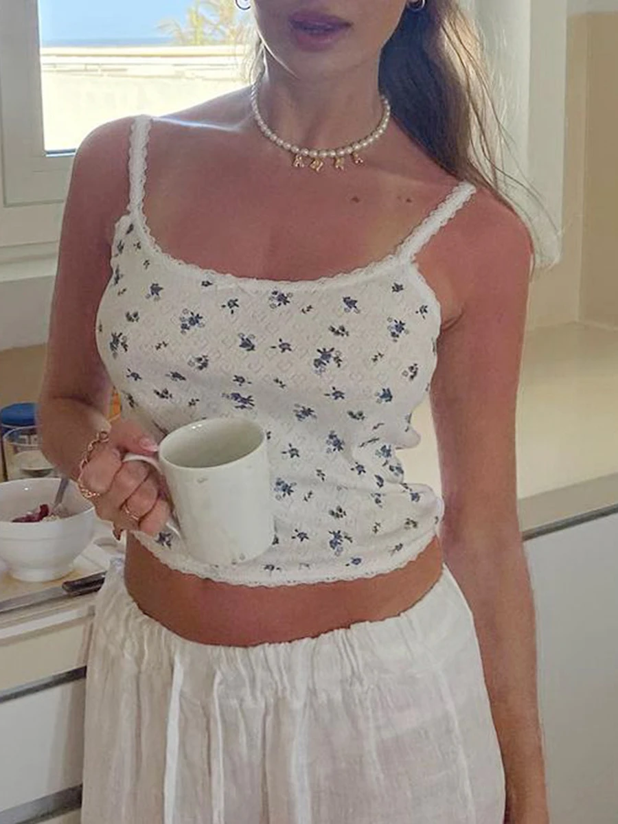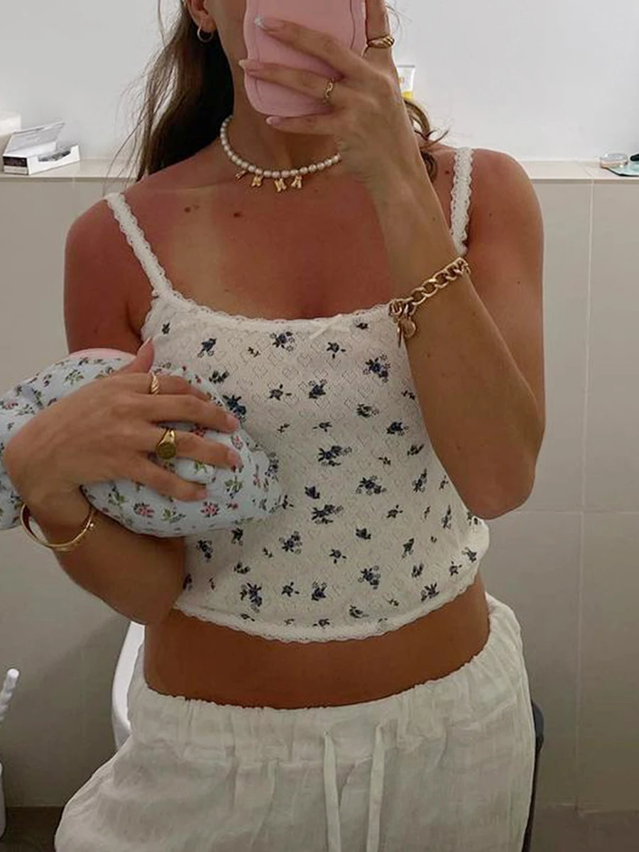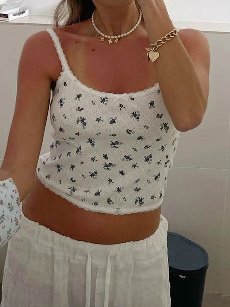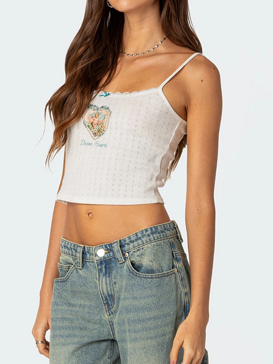 Women Crop Camisole Summer Fashion Print Spaghetti Strap Tank Tops Sleeveless T-Shirt for Streetwear Clubwear
