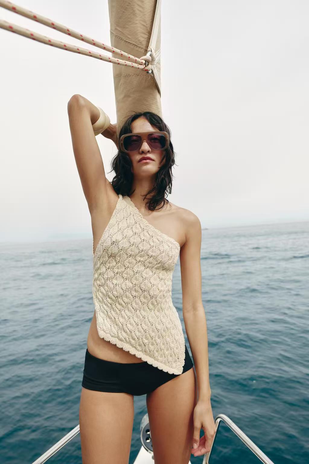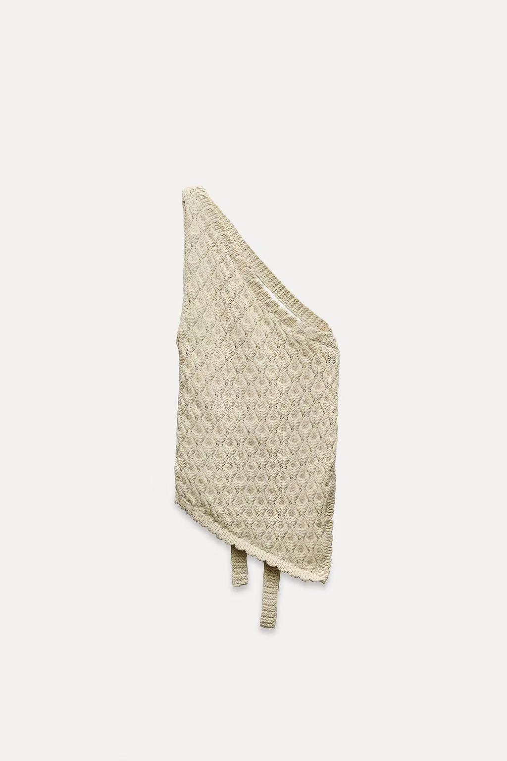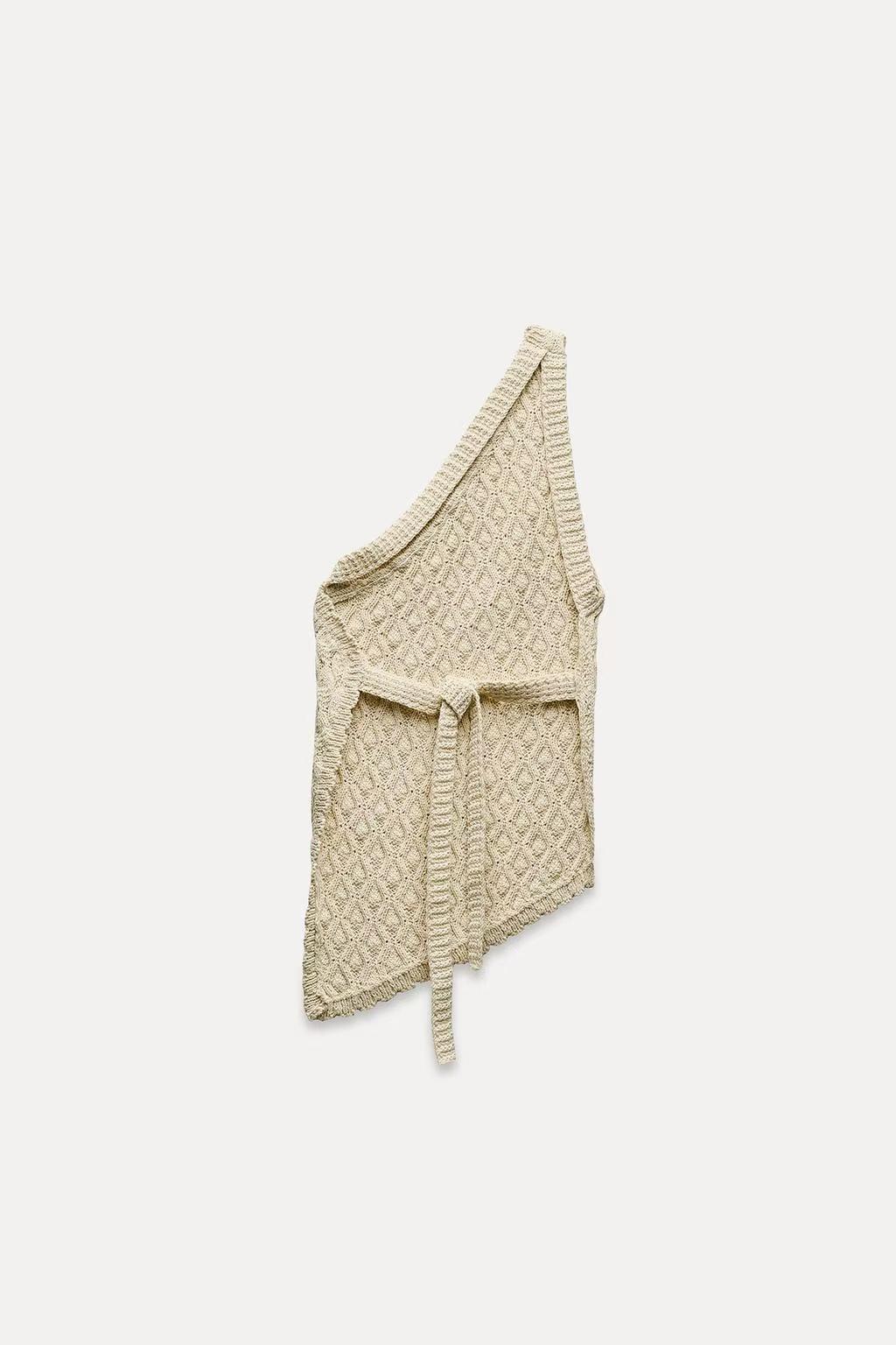 The open-back asymmetric textured-knit top is a must-have addition to your wardrobe. Its unique design elegantly melds comfort and style, making it perfect for various occasions. The asymmetric cut adds a contemporary twist, while the textured knit provides a luxurious feel against the skin.