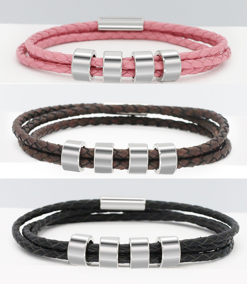 Personalized Beads Absorbent Iron Stone Multi Layered Hand Rope Name Inscription DIY