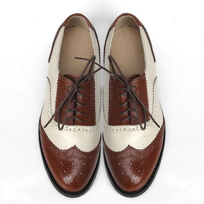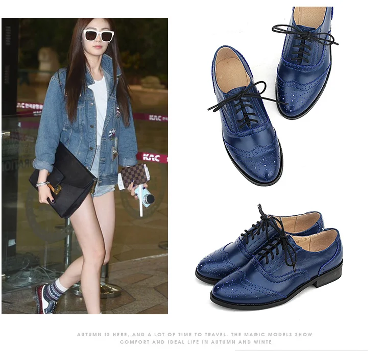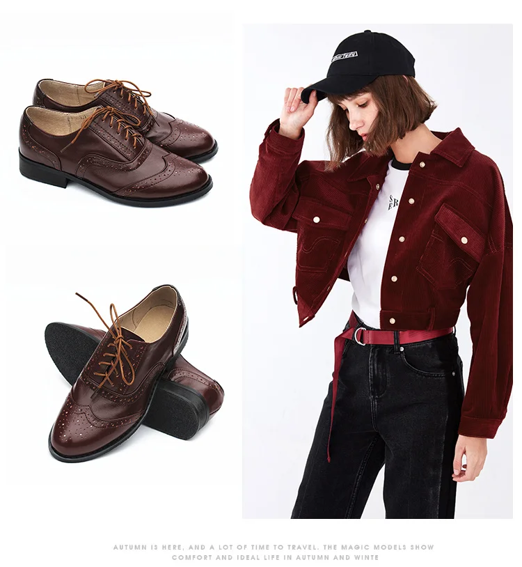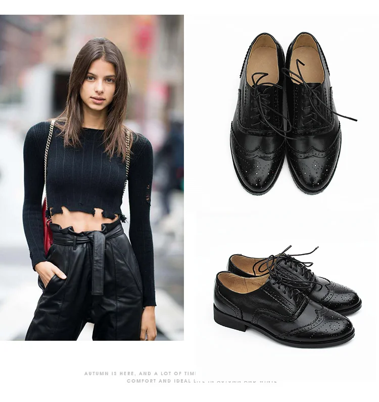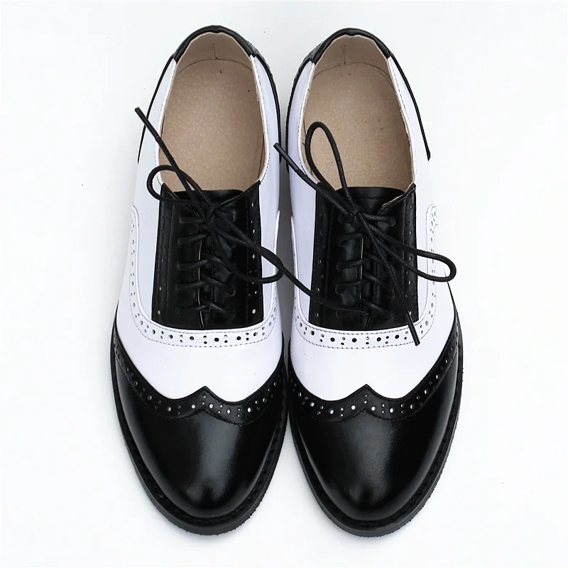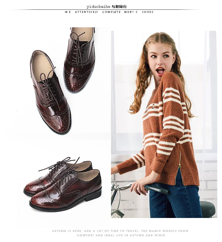 Plus Size Flats Shoes Women Genuine Leather Oxford Shoes For Women British Style Custom Shoes Lace-Up Brogue Leather Shoes