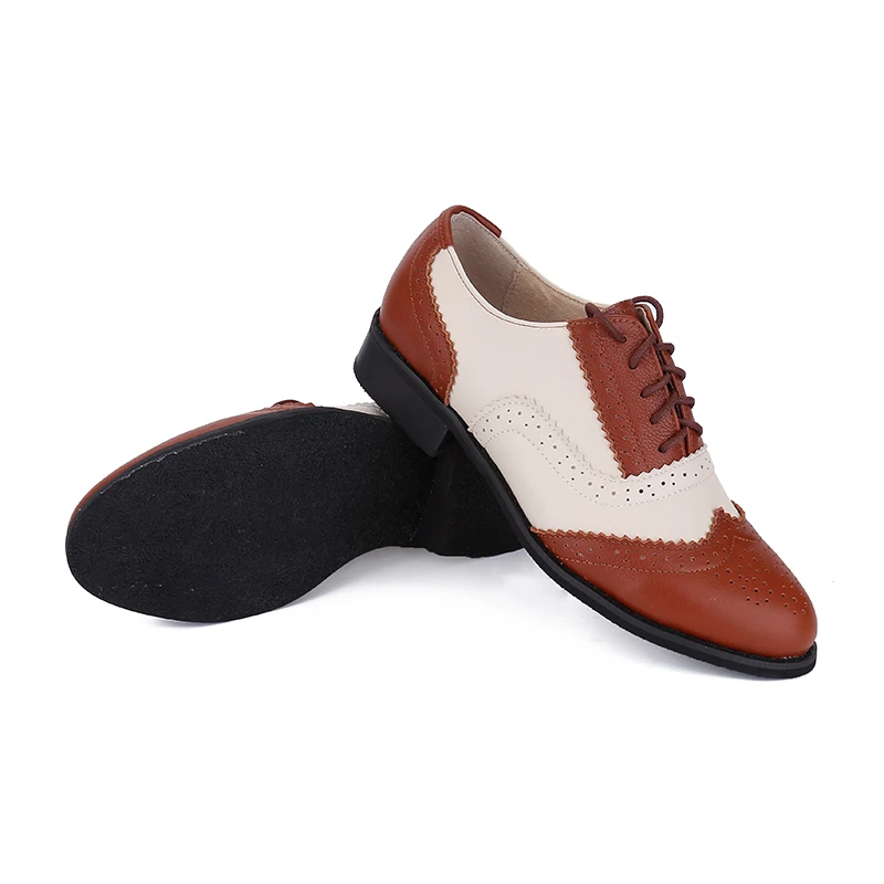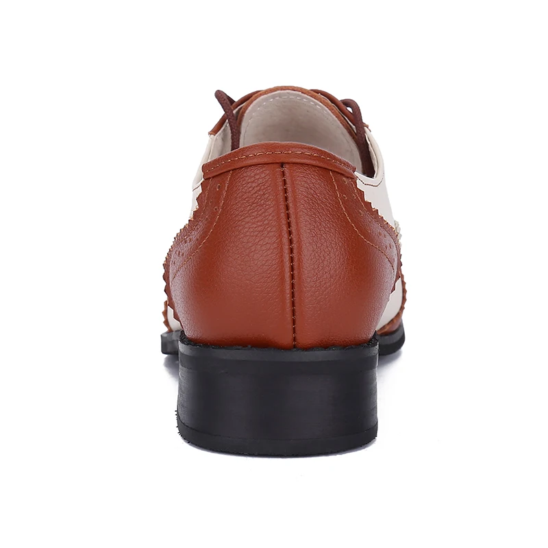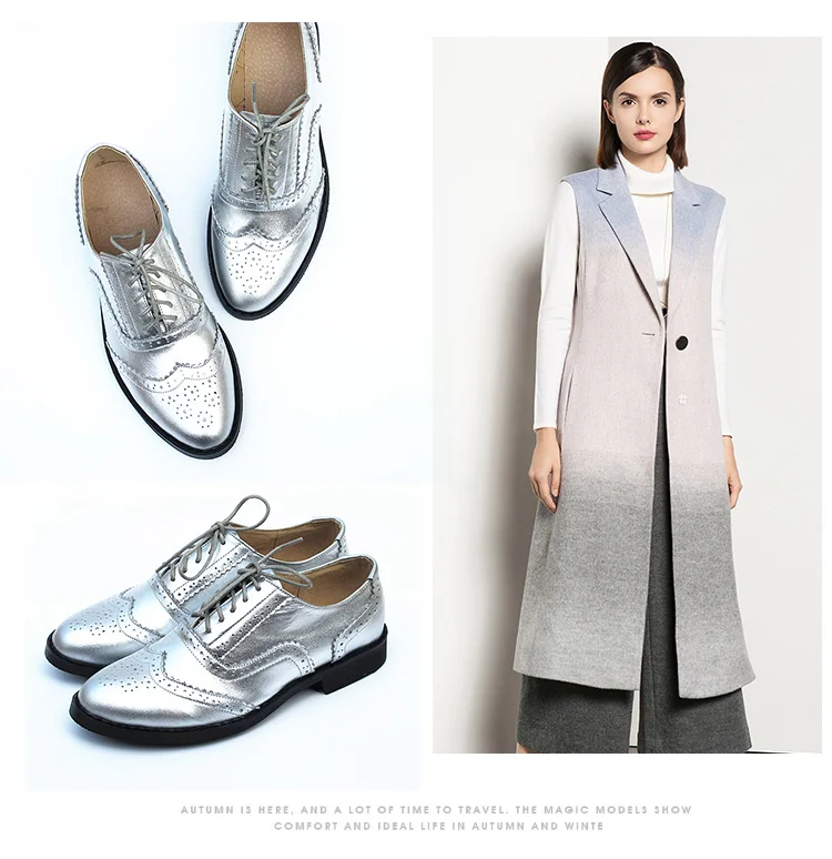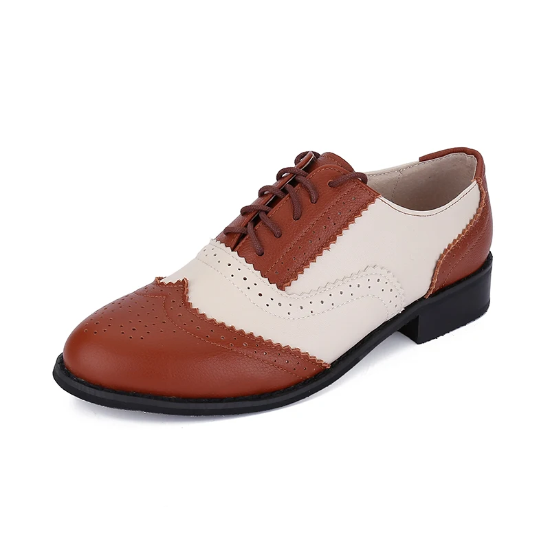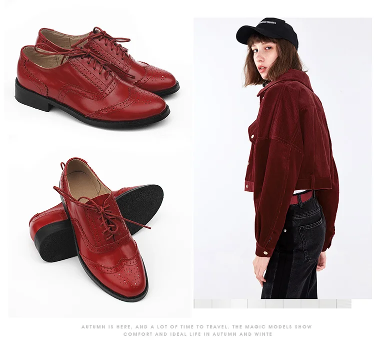 Plus Size Flats Shoes Women Genuine Leather Oxford Shoes For Women British Style Custom Shoes Lace-Up Brogue Leather Shoes