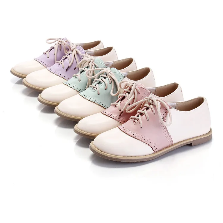 Spring Autumn Women’s Oxfords Flats Brogue Shoes British Derby Flats Comfortable Office Lace-up Loafers Shoes Woman 43