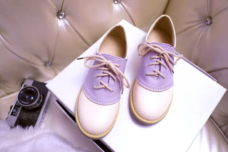 Spring Autumn Women’s Oxfords Flats Brogue Shoes British Derby Flats Comfortable Office Lace-up Loafers Shoes Woman 43