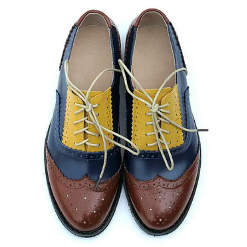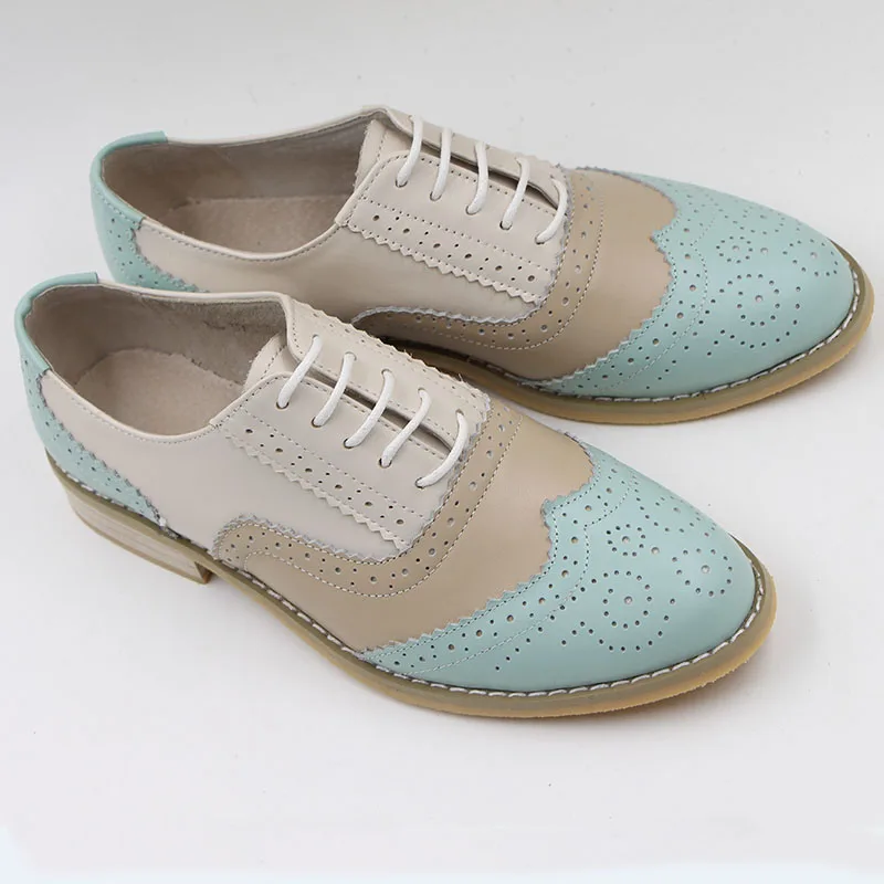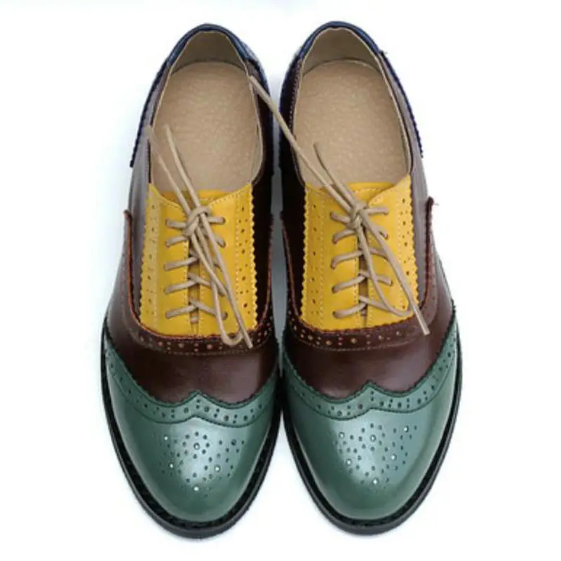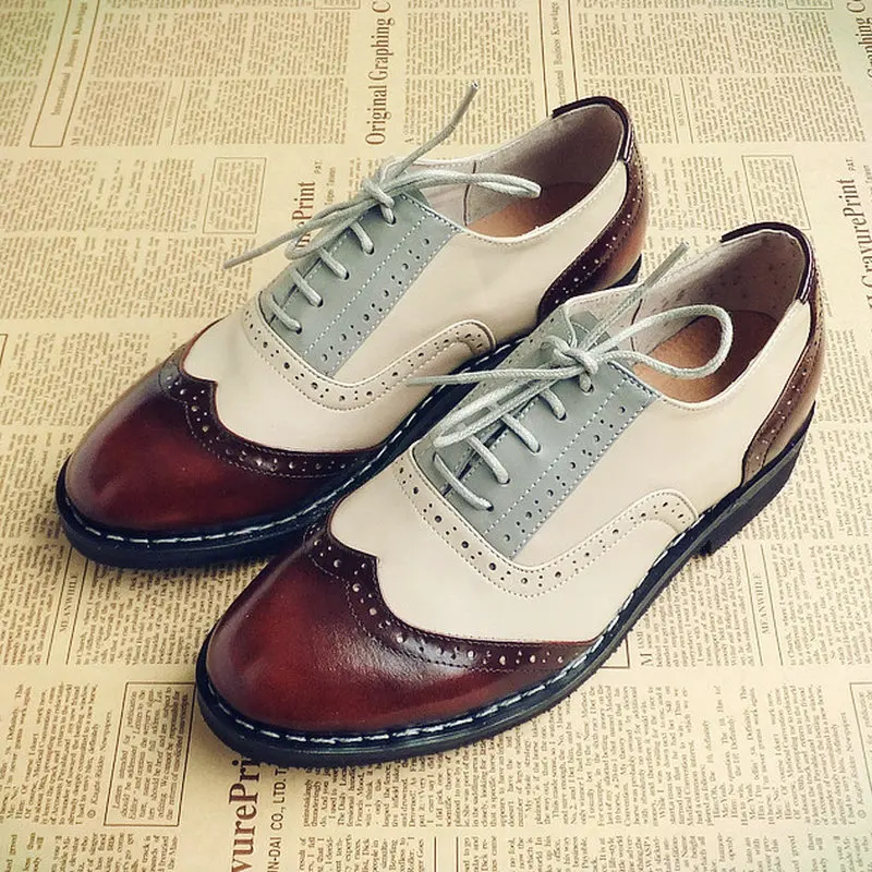Vintage Style Casual Shoes For Women Oxfords Fashion Genuine Leather Mixed Colors Women Shoes Flat Oxfords Single Shoes