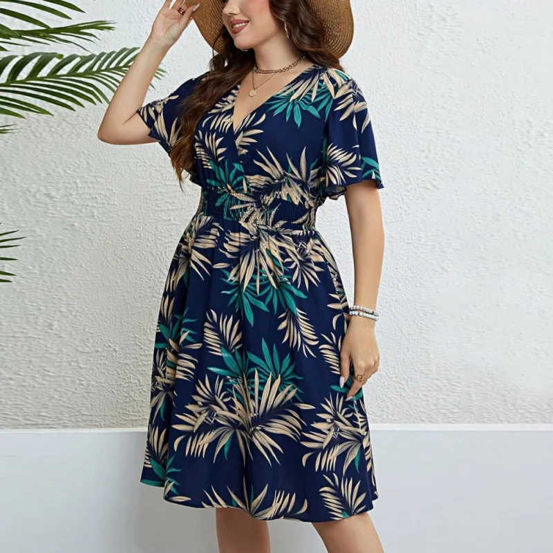 1. Product name: Women’s V-Neck Wrap-up Waist Short Sleeve Dress XL-4XL