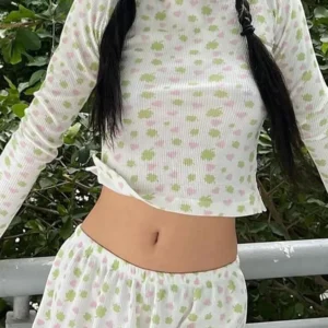 Women 2 Piece Summer Outfits Floral Print Long Sleeves T-Shirt and Elastic Shorts Club Streetwear Fashion Clothes