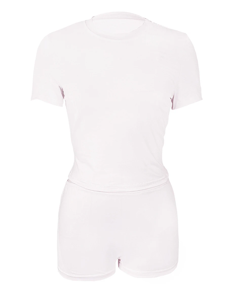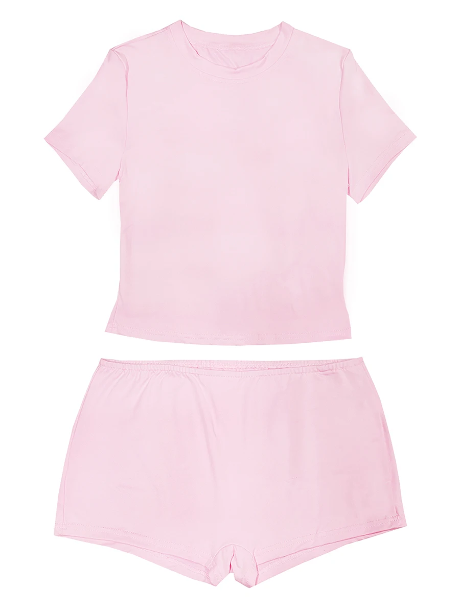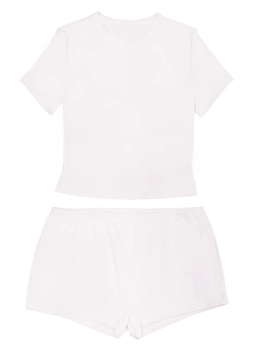 Women’s Summer Loungewear Set, Solid Color Short Sleeve Round Neck T-Shirt with Low Waist Shorts 2 Pieces Sleepwear