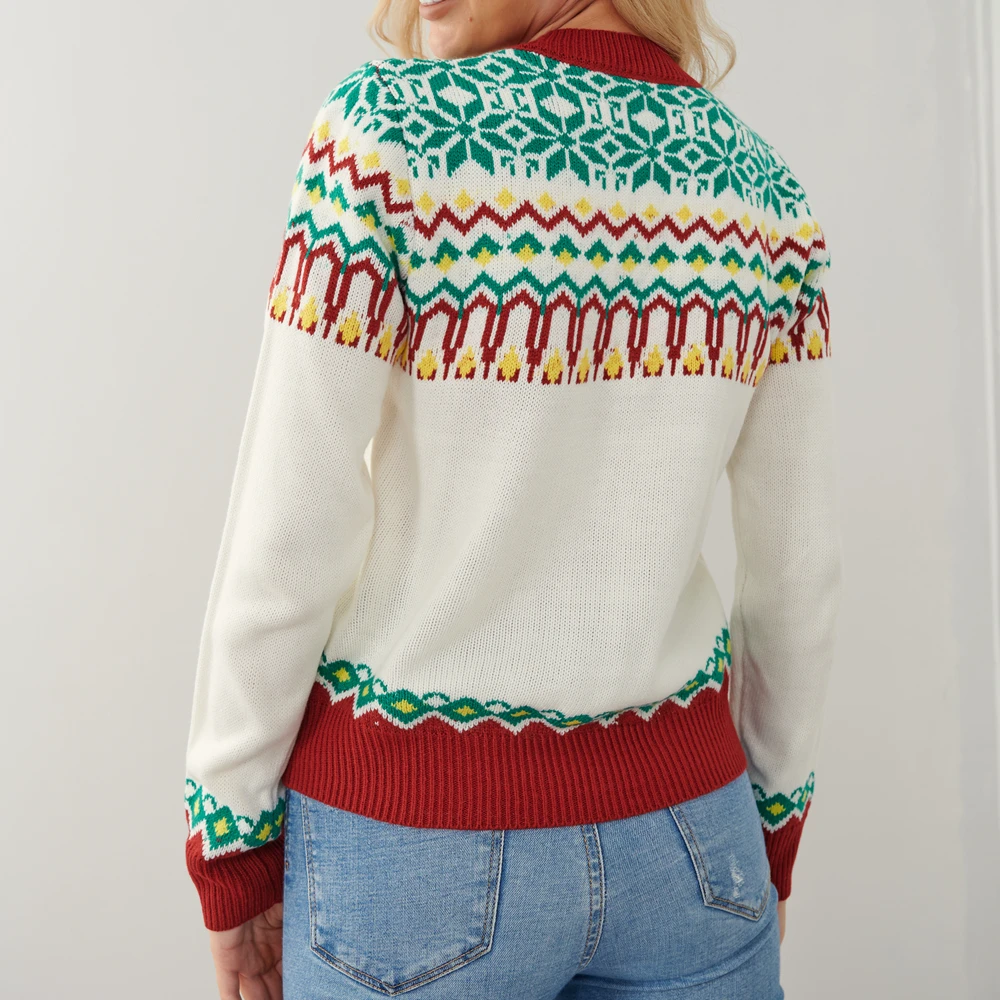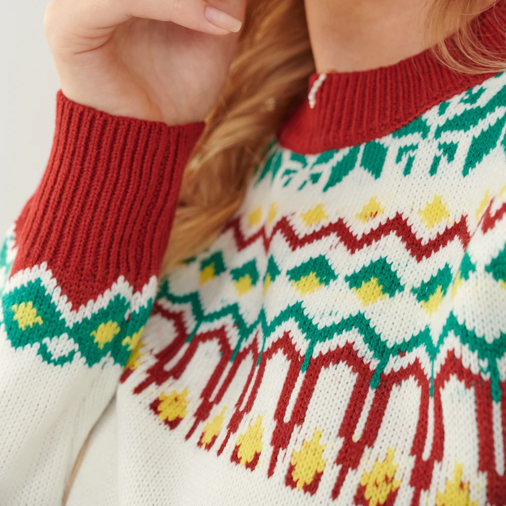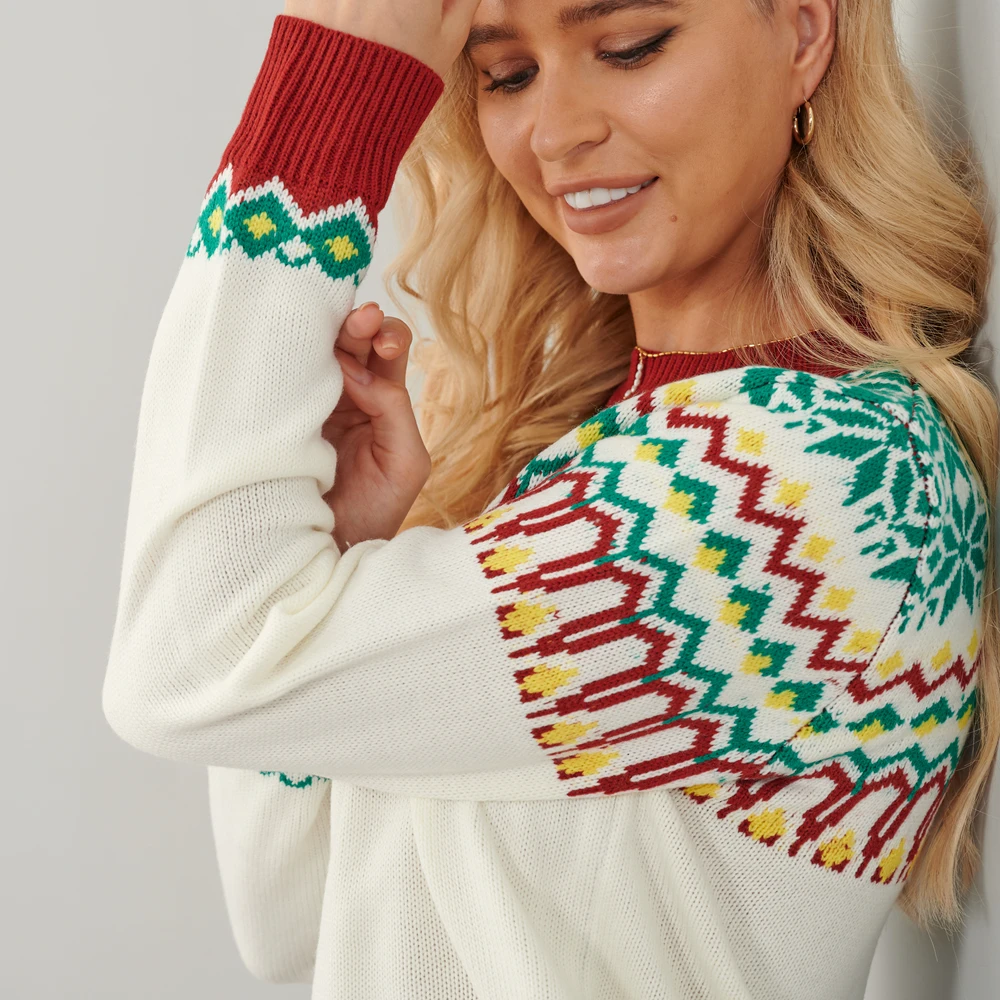 Women’s Long Sleeve Flower Print Sweater, 100% Acrylic Pullover, Loose and Thick, White Color, Size S-L, Autumn, New