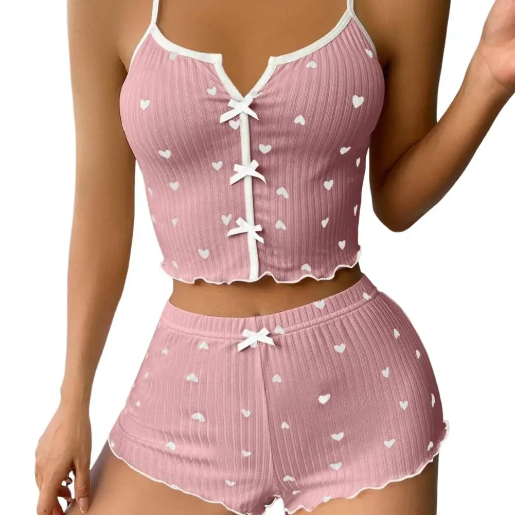 Sexy Summer Two Pieces Women Pajamas Set Deep V-Neck Tops And Shorts Pajama Suit Ladies Sleeveless Nightwear For Female
