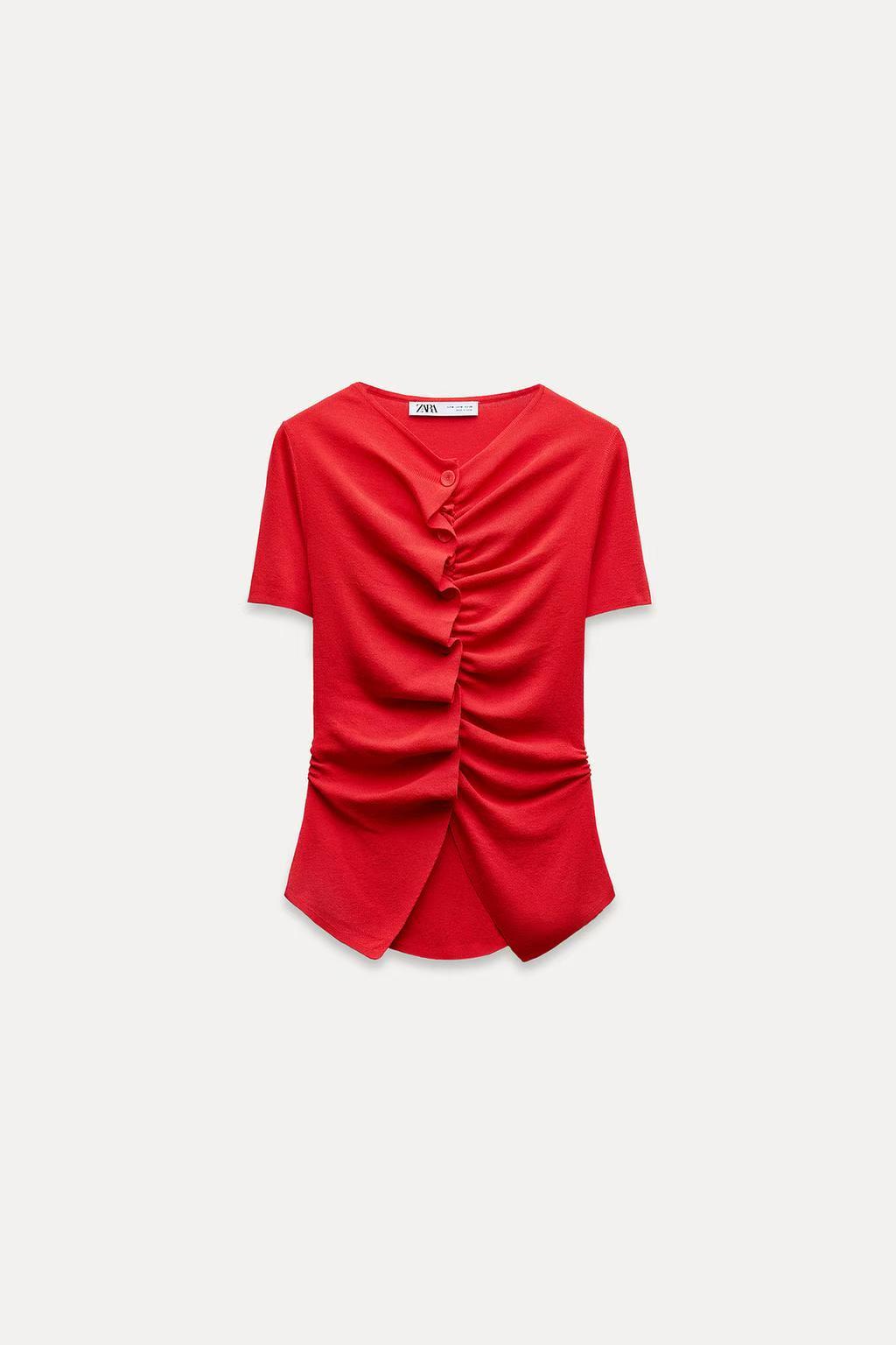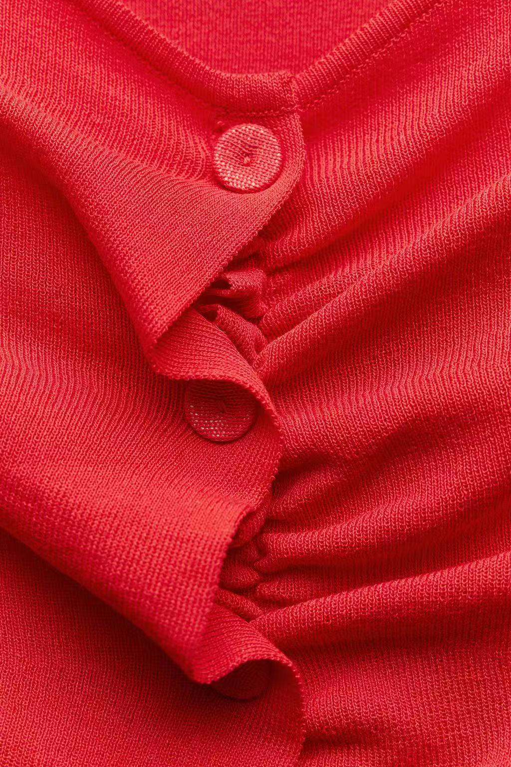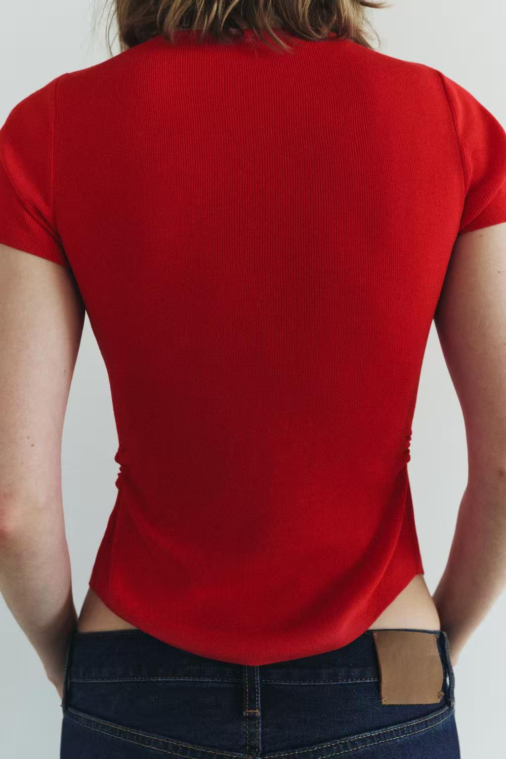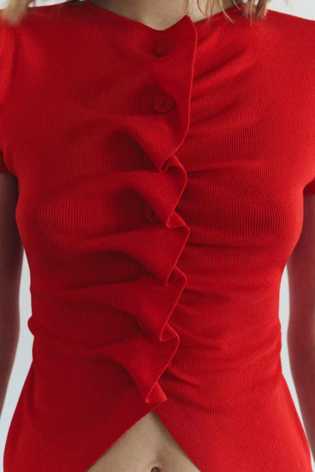 Introducing the women’s red knitted short sleeve slim fit button pleated top, designed for the modern woman. This elegant piece combines style and comfort, featuring a flattering slim fit that accentuates your silhouette. The vibrant red color adds a pop of personality to any outfit, making it perfect for various occasions.
