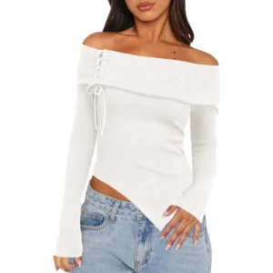 $48.82 – $54.70BlackClear3536373839404142Women’S Spring Long Sleeve T-Shirt Sexy One-Piece Collar Side Lace-Up Pulloverssolid Color Elegant Gental Fitted Regular Tops